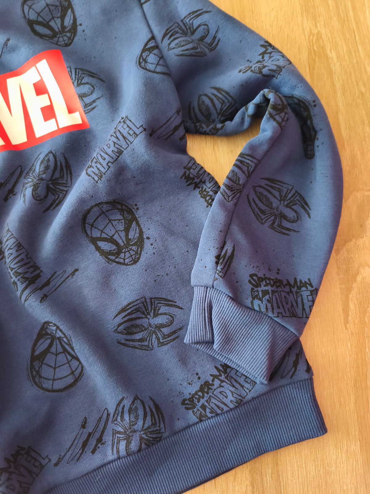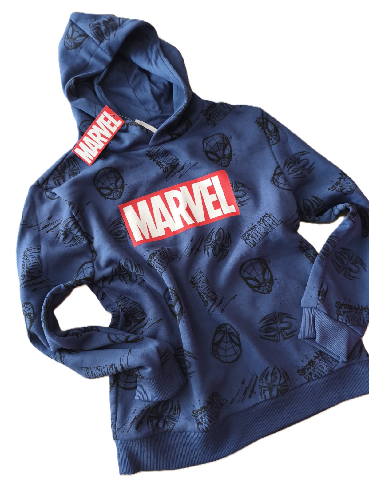 Krásná chlapecká mikina s kapucí ... nová s visačkou, ... oblékání přes hlavu ... rukávy a dolní okraj zakončeny pružným lemem ... uvnitř mikiny hřejivý jemný chloupek ... vyrobena je ze 60% bavlna a 40% polyester... velikost psaná 140 ....
