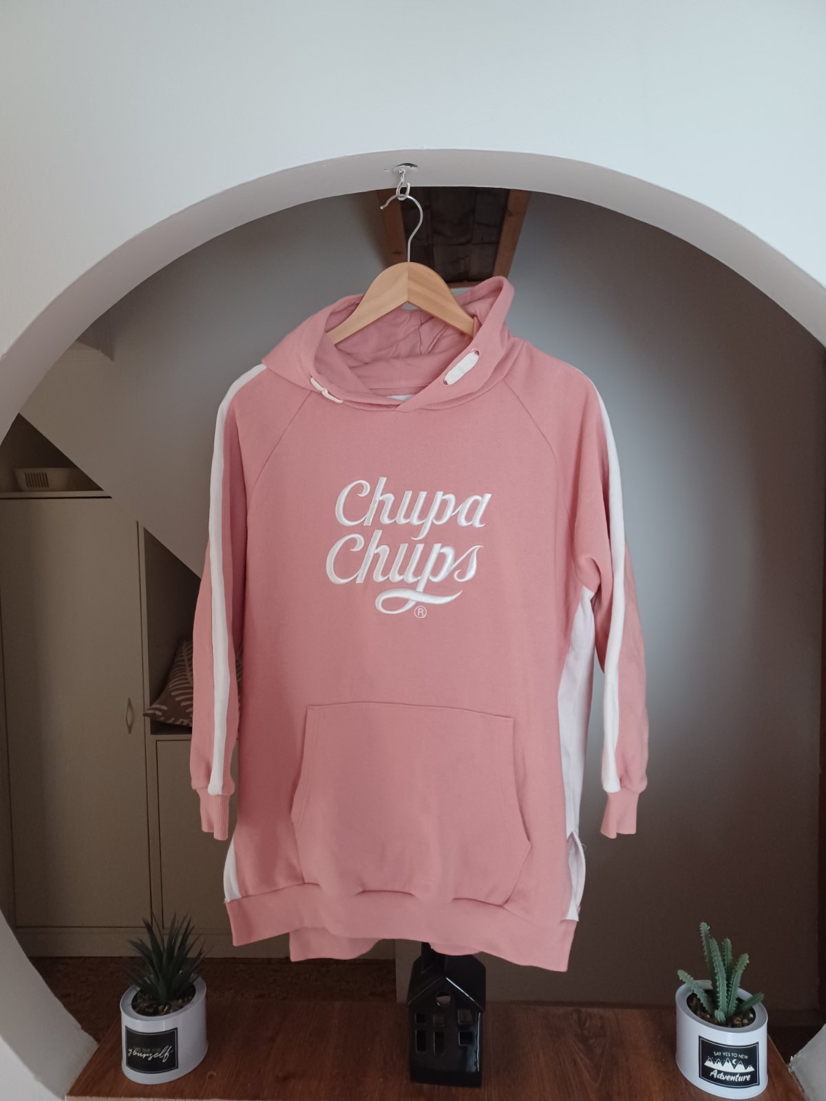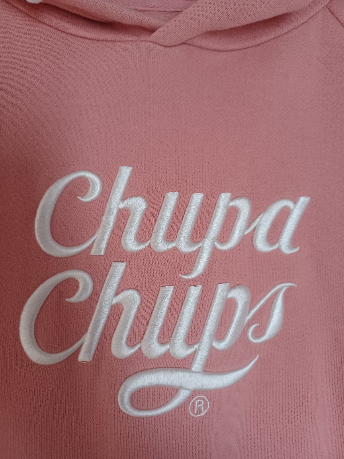 Starorůžová delší mikina Chupa chups, běžné známky praní, žmolky. Vel 146, klidně až po velikost 164 /XS-S, jen je pak kratší rukáv.