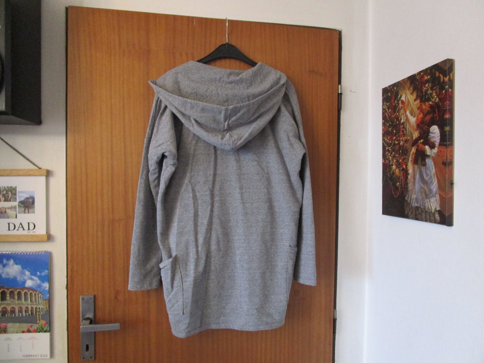 Pěkný sv. šedý bavl. kardigan s kapucí, kapsy, vel. M, délka odshora dolů 80 cm, jako nový, cena jen 119 Kč, zn. Bershka.