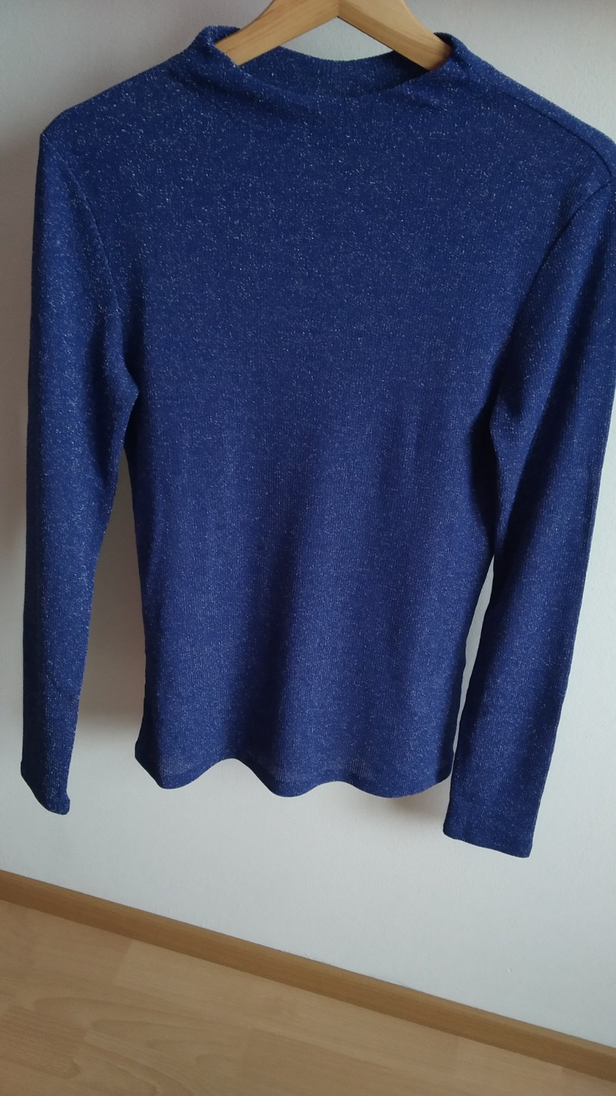 Svetr se třpytivými kamínky, tmavě modrý, vel 36-38, ale je spíše větší, oversize, koupený v Bon Prixu, oblečený pouze dvakrát, nesedí mi, 150,-