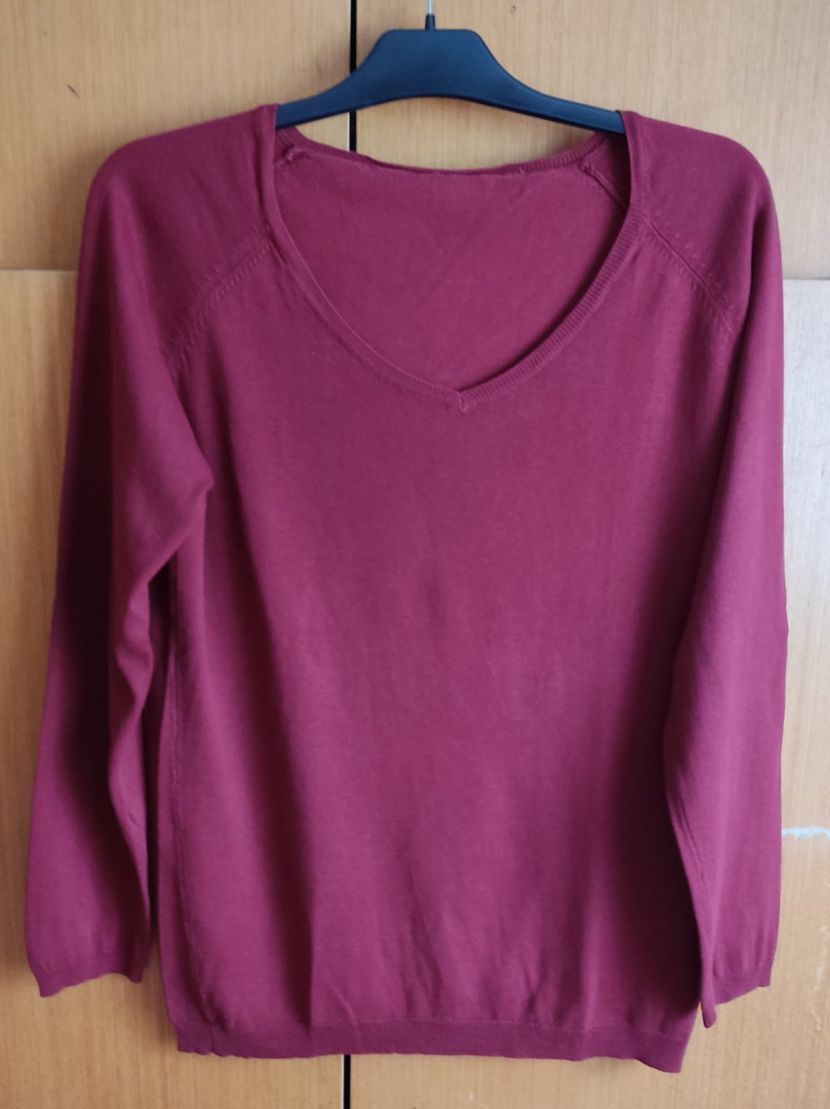 Prodám skořicový svetřík s výstřihem do V, vel. L, šířka 58 cm, délka 70 cm, nenošený. Cena 200,-Kč + poštovné. Pište pouze sms nebo e-mail, nevolejte.