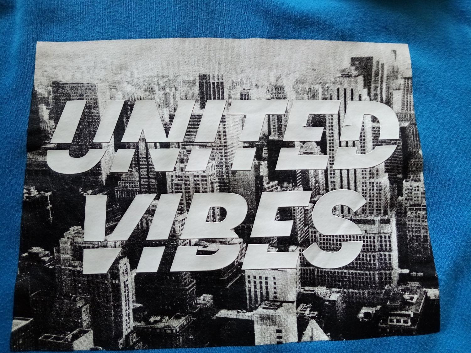 Tenší bavlněná mikina. Nápis popraskaný. Rukáv od ramene 55 cm, délka 56,5 cm, šířka 45,5 cm.
