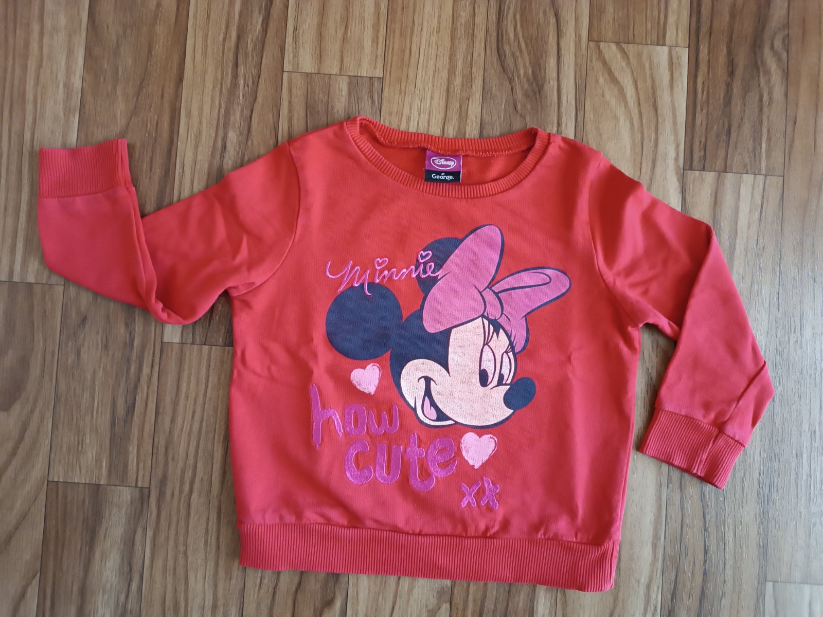 3) Červená mikinka s myškou Minnie, Disney George, vel. 92/98 (2-3 roky). Cena: 40 Kč