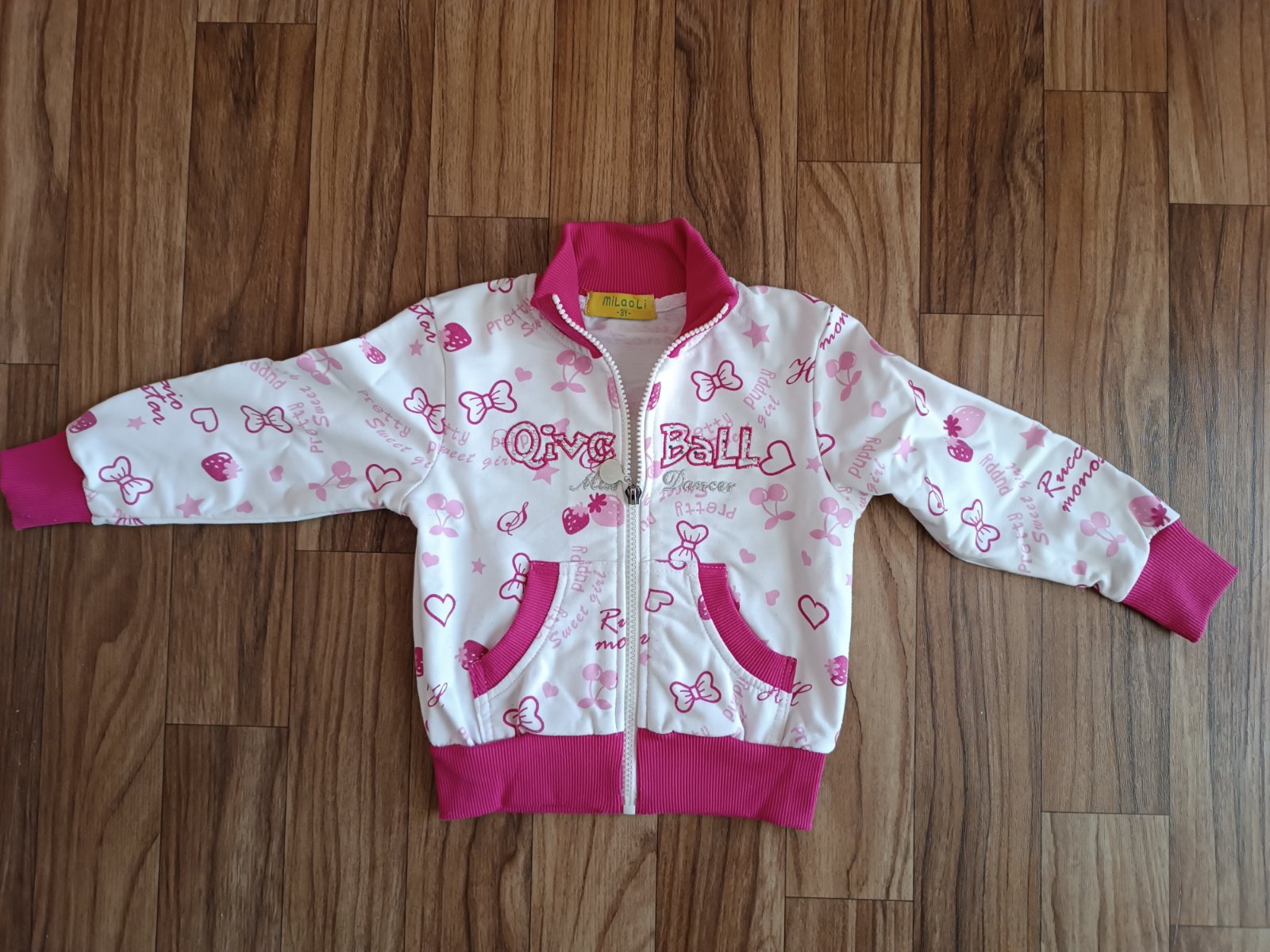 2) Bílá dívčí bavlněná mikinka, Milaoli, vel.98, oblíbená, zapínání na zip, v přední části 2 kapsy. Cena: 30 Kč