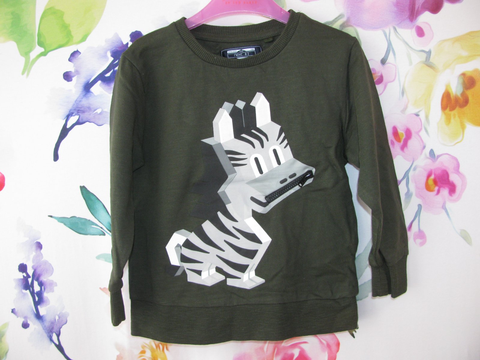 Parádní tmavě zelená, bavlněná mikina, s tištěným obrázkem zdobeným zipem, pružné lemy, 100% bavlna.