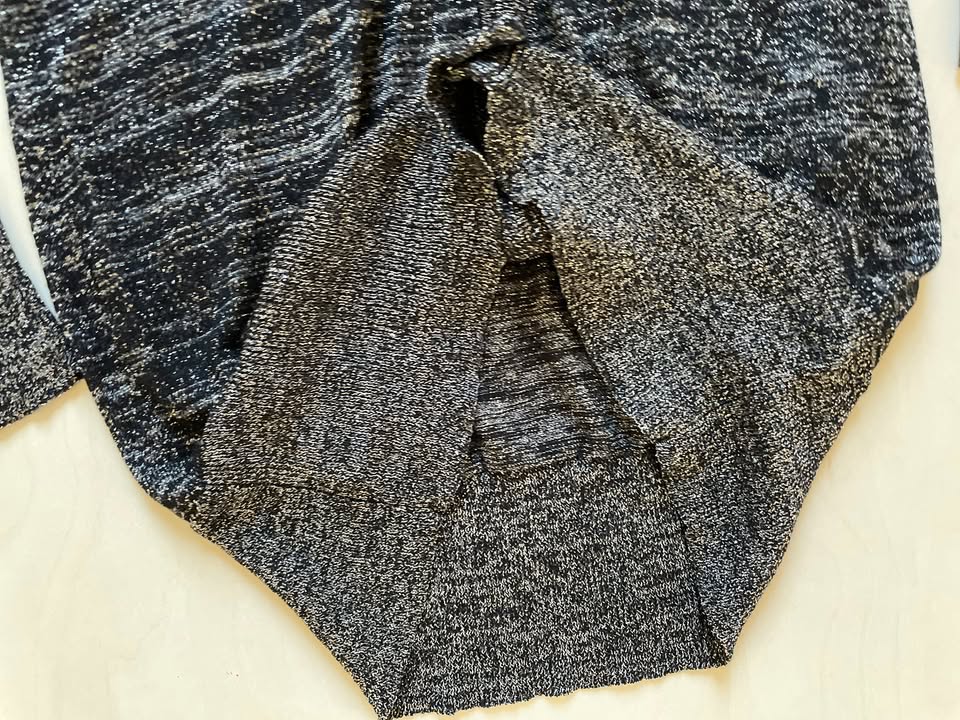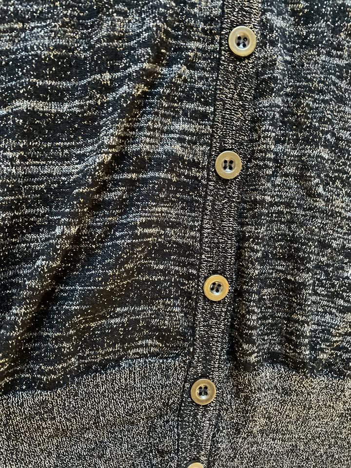 Delší propínací svetřík se stříbrnou nití, vel M i