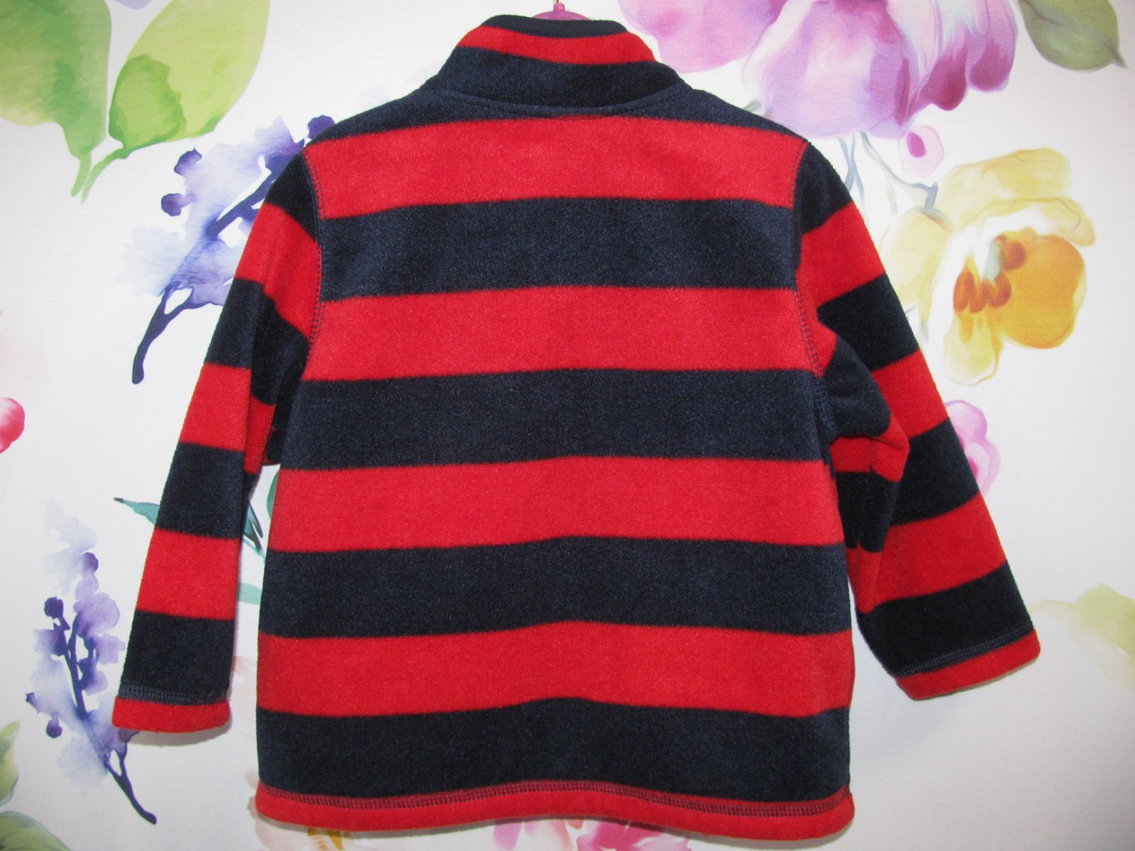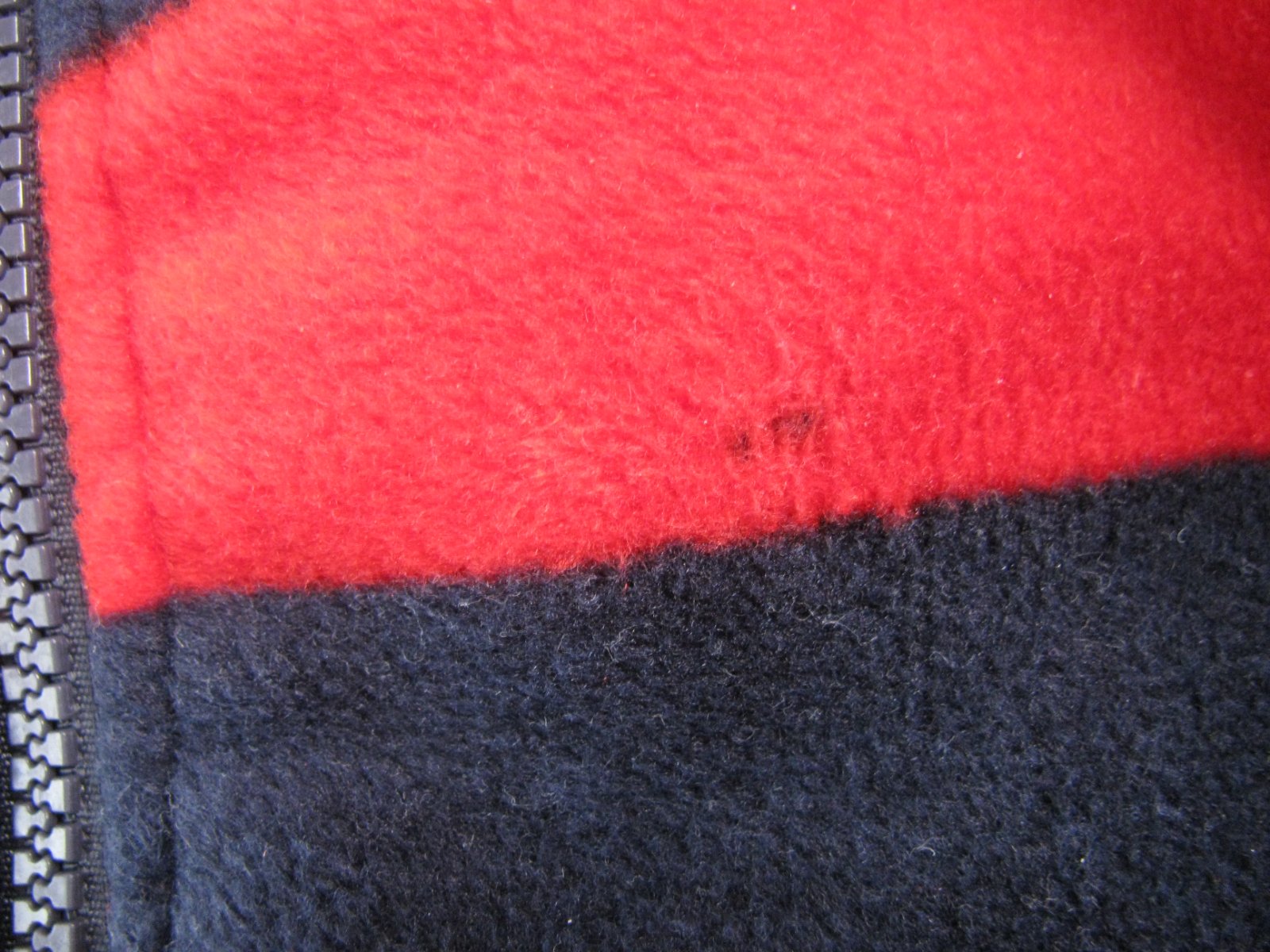 Krásná, nová, červeno modrá fleecová mikina, zap. na zip, boční kapsy, 100% polyester. Mikina má pidi flíček - viz foto, proto neuvádím jako novou. Ničemu to nevadí, přesto zohledňuji v ceně.