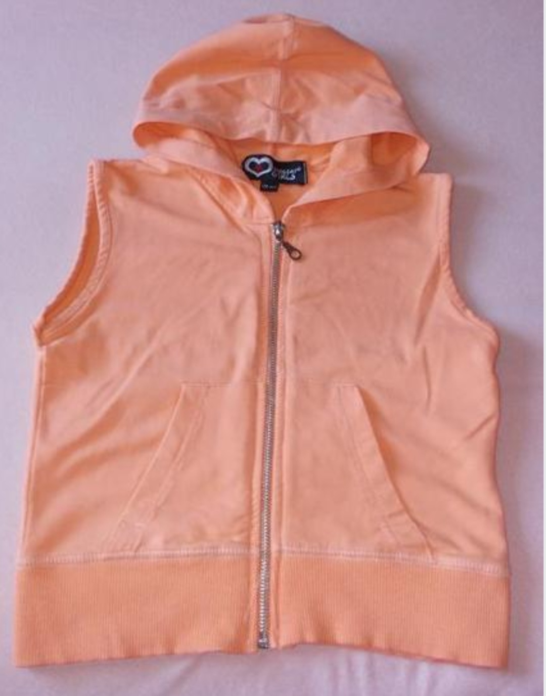 Dívčí vesta na zip s kapucí krásná meruňková barva(nepodařilo se mi lépe vyfotit), Coolcat girls, vel. 145/152, bavlna. Vesta je šetřená - bez vad.