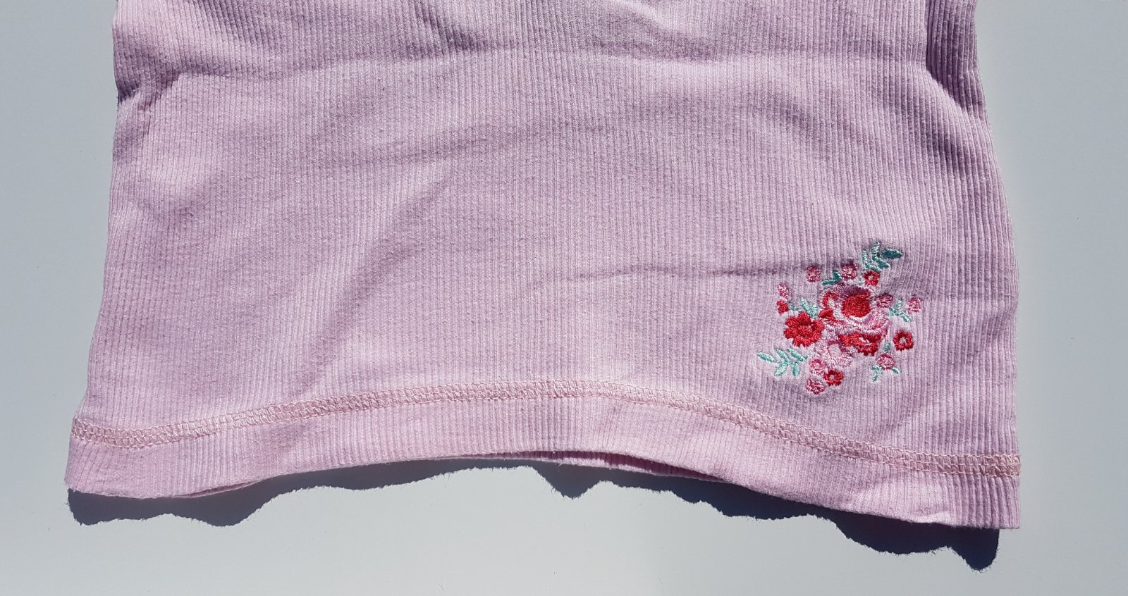 možno nosit jako tričko nebo mikinu, s všitou bílou vsadkou a vyšitými květy, prací chloupek,
