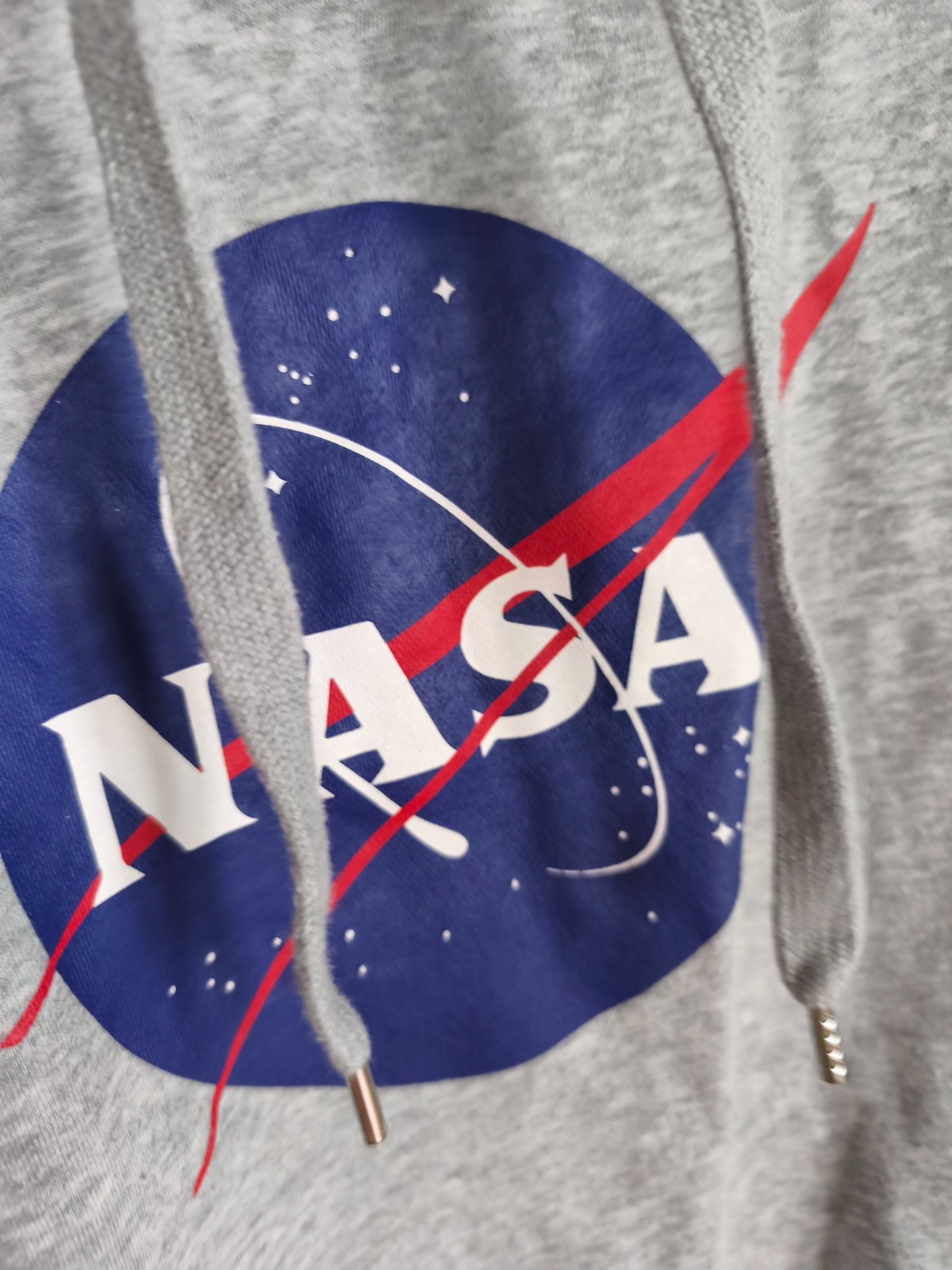 Mikina Nasa H&M vel. S, dcera měla při 158/164, běžné známky praní a na rukávu v pruhu bohužel malý flíček a další miniaturní také na rukávu, vypadá jako od krve, ale nešlo mi vyprat (možná přírodní přípravek "dračí krev", ta nejde vyprat), proto věnuji zdarma k objednávce, napište si o ní.