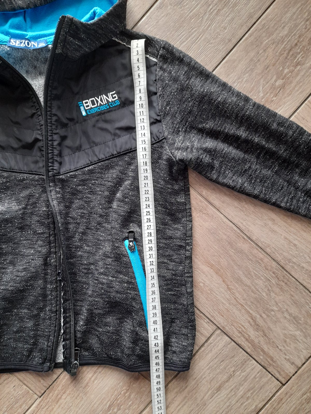 Chlapecká mikina s kapucí zn. Sezon, vel. 134/140. Teplejší, vnitřek slaboučký fleec, kapuca podšitá bavlnou. Uvnitř prací žmolík, jinak zachovalá.