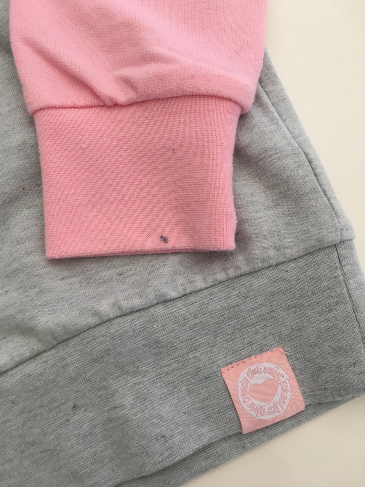 Jednou vypraná. Mini flíček na rukávu od pera (viz foto), jinak jako nová.