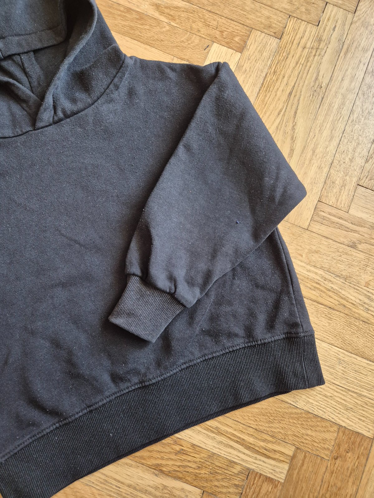 Délka 41,5 cm, šířka 44 cm, rukáv od ramene 37,5 cm, od kapuce 50,5 cm