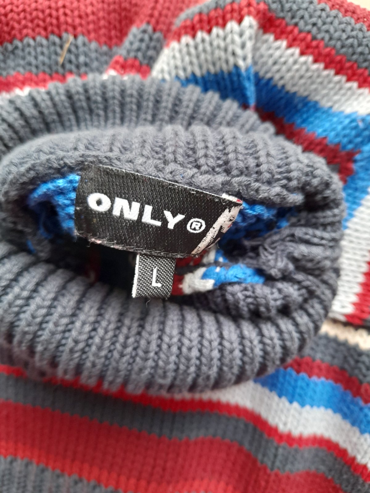 Vypadá modrá ale je krásně módně,sytě fialová.Pletená ,,hrubým" vzorem ale je hebká,teplá a nekouše,! Nošená a má už trochu žmolíky,rolák je však naprosto fit a pod bundou bude bezva+super zahřeje....