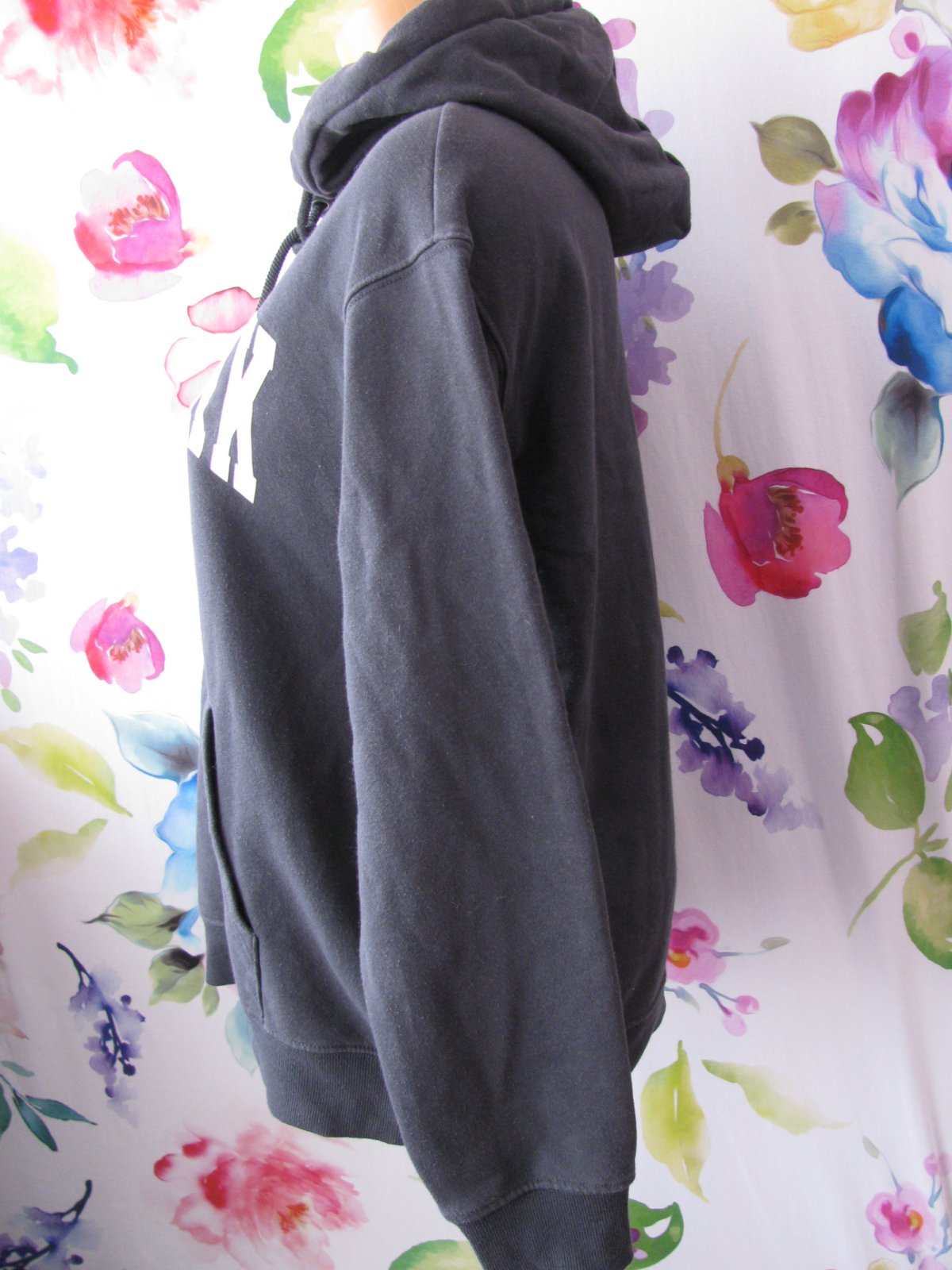 Bavlněná mikina s kapucí, přední kapsa klokanka, pružné lemy, 80% bavlna, 20% polyester. Povrchový chloupek,žmolík po praní, jinak bez vady. Zohledněno v ceně. Barva je šedomodrá.