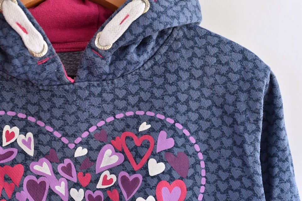 VELMI DOBRÝ STAV – oblečení nese známky nošení a praní, jako patrnější chloupek, mírně opraná barva, žmolík jen na lemech,