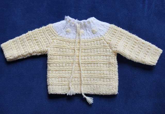Měkoučký pletený svetřík. neutrální barva, stojáček aby netáhlo na krček, lze stáhnout šňůrkou. velikost je odhadem 68, pro jistotu přeměřte.
