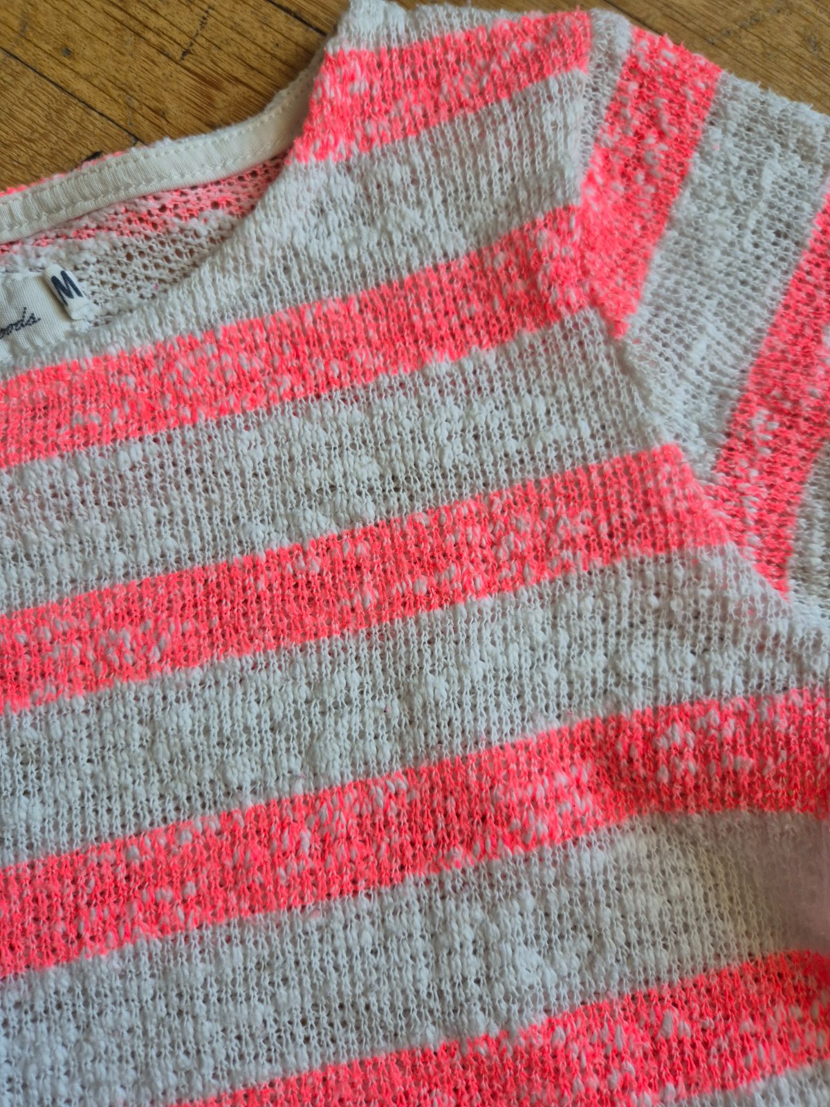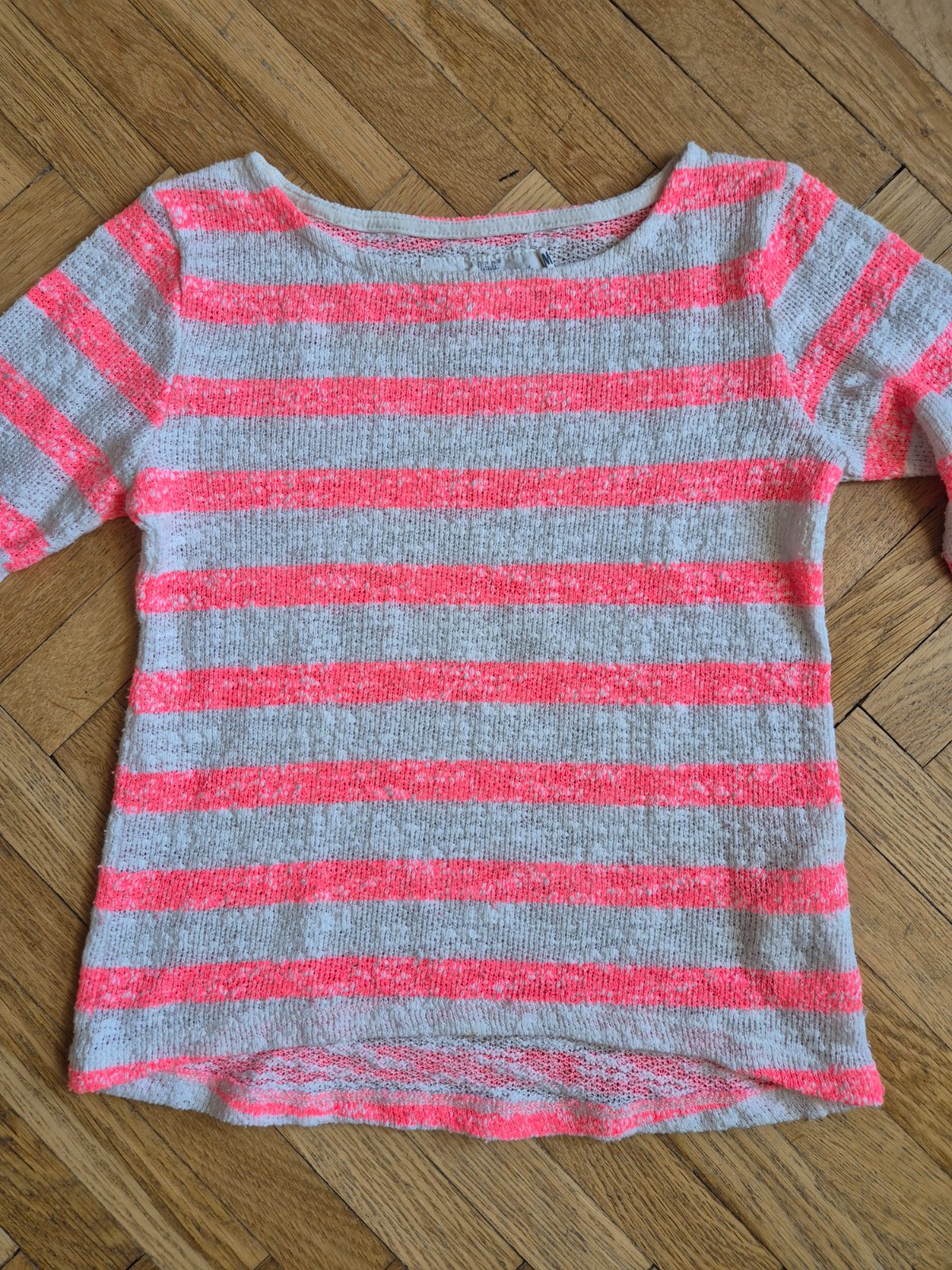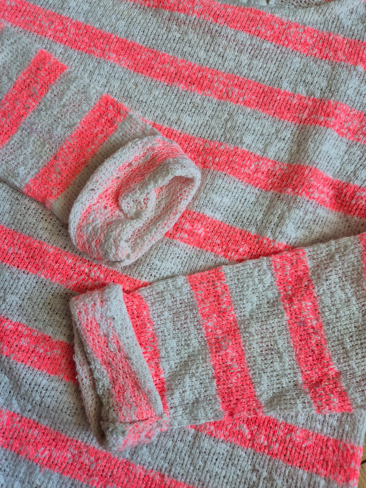 Lehký dírkovaný svetřík na léto, napevno ohrnuté rukávy, na rukávech žmolky