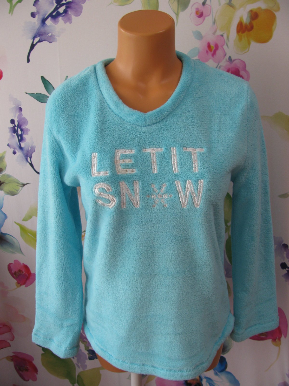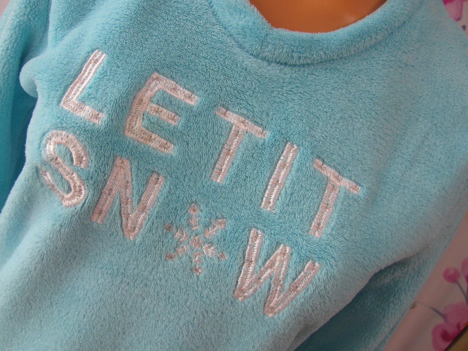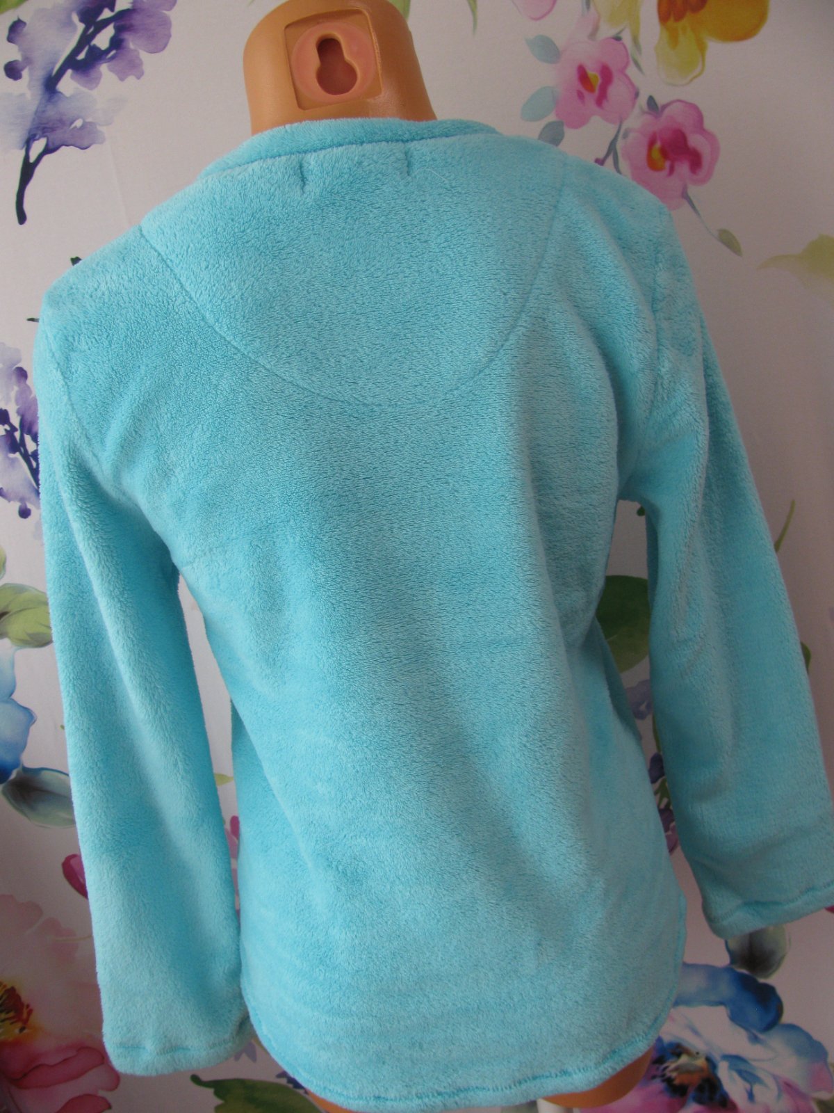 Krásná ,jemná, hebká modrá mikina, vyšitý nápis, hřejivá podšívka, 100% polyester.