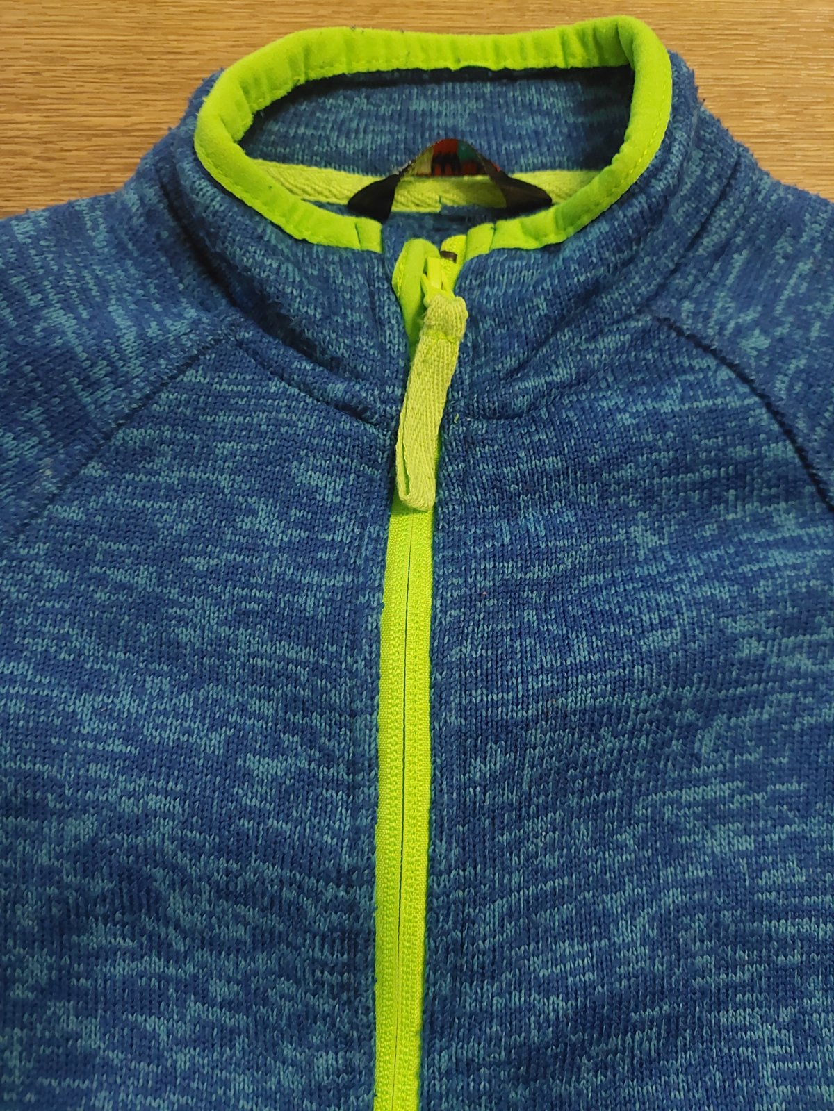 Slušivá mikina se vzhledem svetříku,příjemně teplá,zelené prvky mikinu oživují.