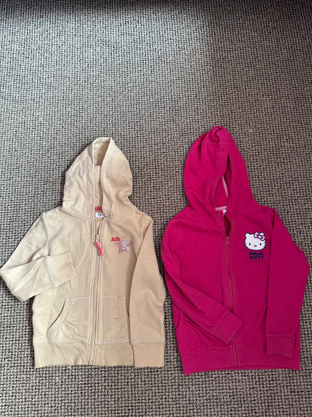 Prodám nošené mikiny Bílá (smetanová) - Kiki&Koko, vel. 110, flek na nápletu rukávu Zelená – hand made, bez vad Dívčí slabá mikina – Decathlon, vel. 105-114 Cena celkem