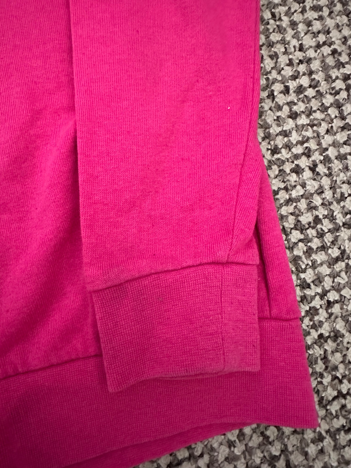 materiál teplákovina, melírovaná mikina už je starší model, takže potisk a bervy už oprané, odřený jezdec a spodní lem už moc nepruží, na lemu jednoho rukávu lehce nažloutlý flíček cd 35, rukáv 42cm
