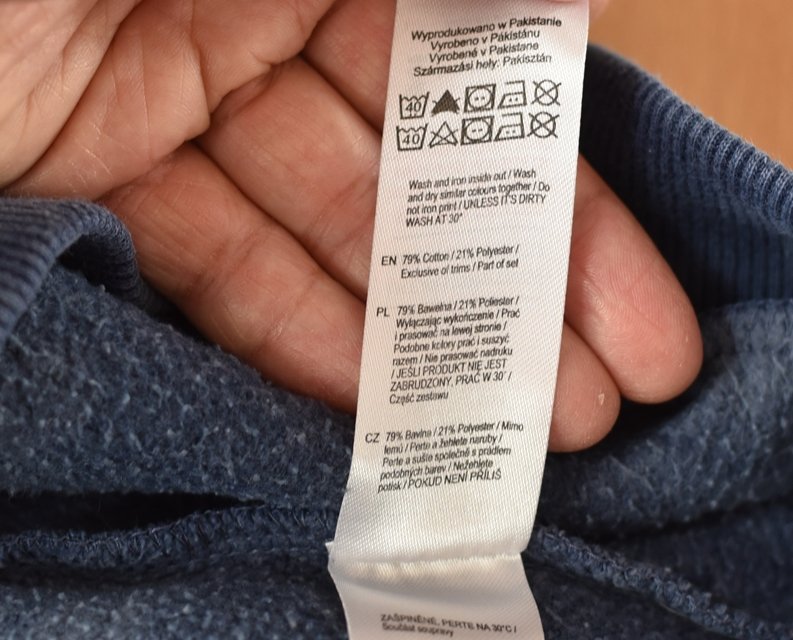 VELMI DOBRÝ STAV – oblečení nese známky nošení a praní, jako patrnější chloupek, mírně opraná barva, žmolík jen na lemech,
