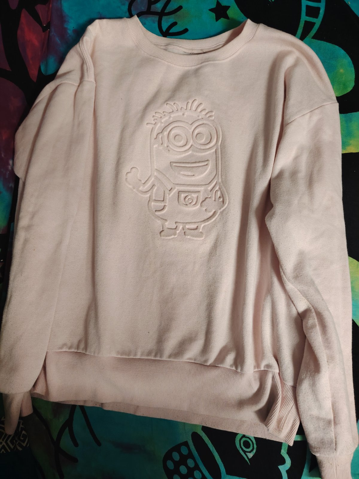 Délka 60 cm, šířka 60 cm (vel. oversize sedí na S - M). Barva: starorůžová. Mikina je jednou vypraná, ale na předním díle nad uzlíkem je malá černá tečka (běžně přehlédnutelná). Doprava od 65 Kč