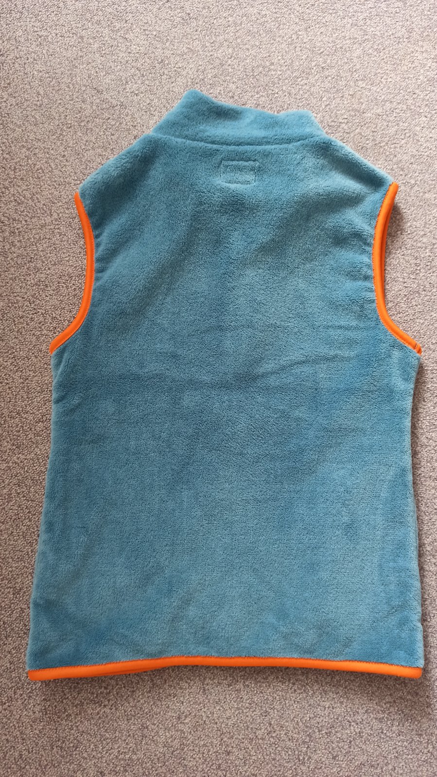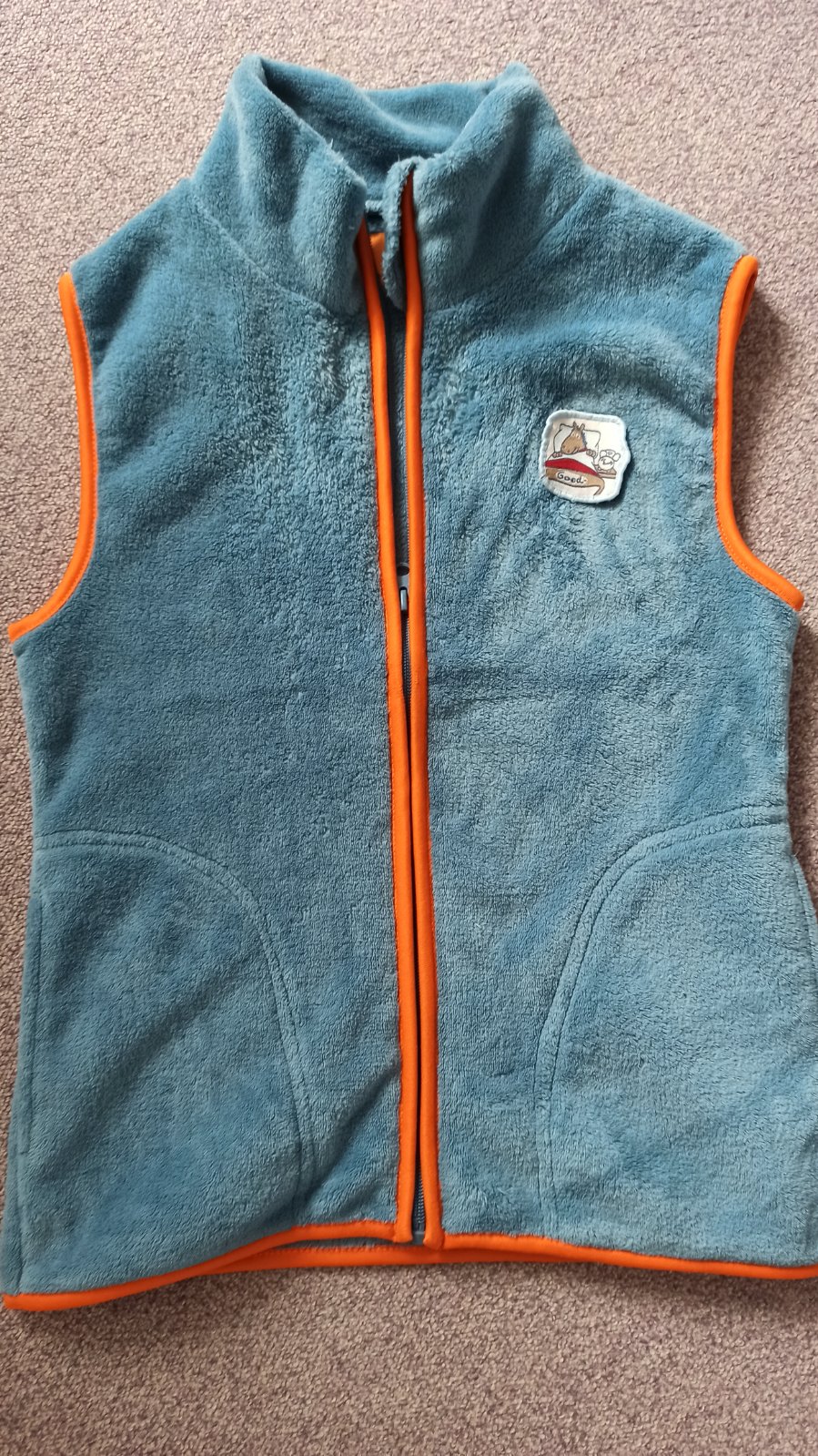 Hebká vesta se zapínáním na zip v šedé barvě s kontrastem oranžového obšití.