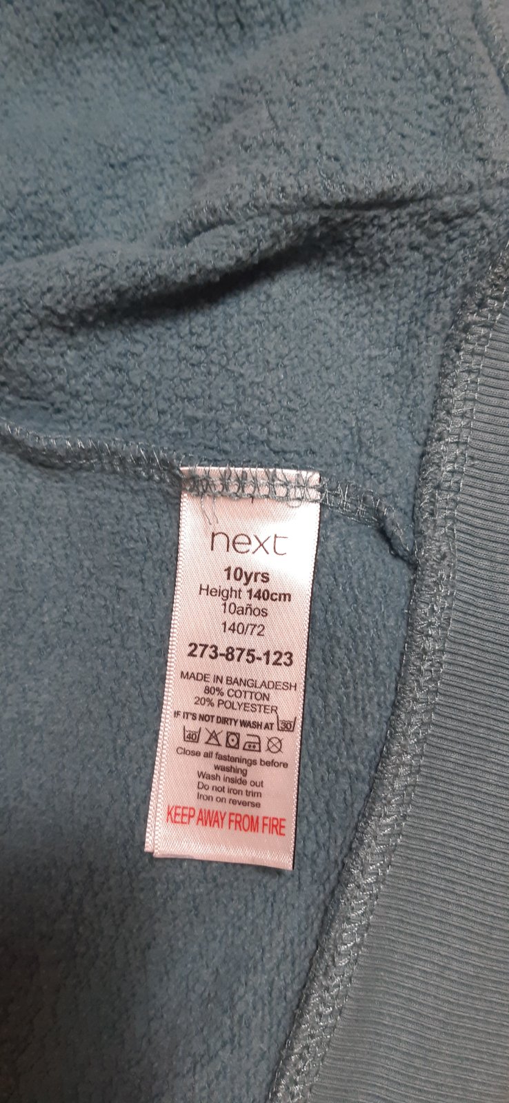 Chlapecká propínací mikina Next 140 (10 let). Vepředu 2 kapsy a uvnitř chloupek. S celoplošný potiskem různých reálných obrázků dinosaurů. Barva mikina je zvláštní khaki zelená - nejblíže je foto 2 detail obrázků. Skvělý nošený stav jen po synovi, námi kupovaná nová.