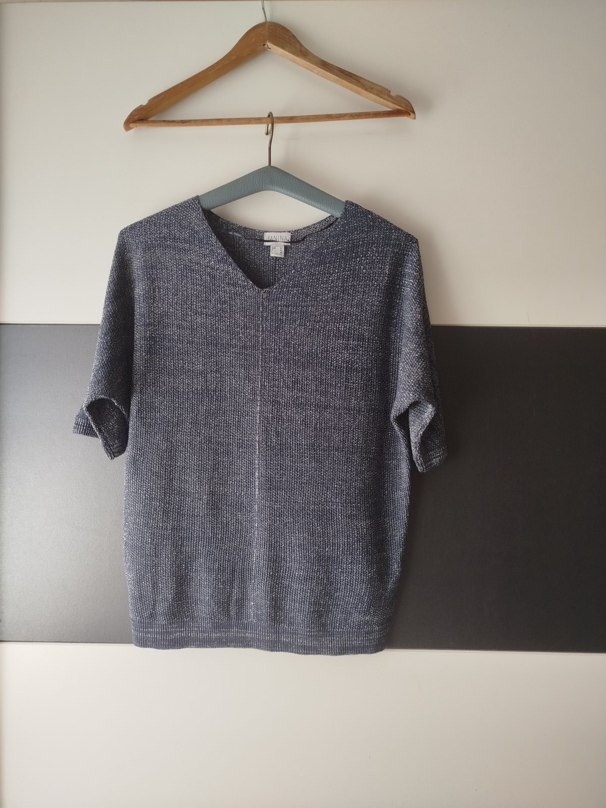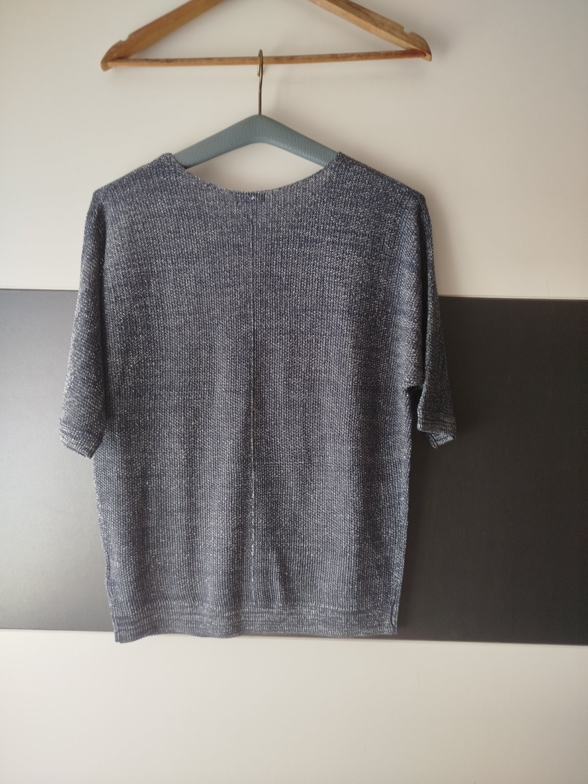 Délka 63cm, šířka 50cm, je pružný, nošený jen párkrát, 3/4 rukáv, stříbrné nitky