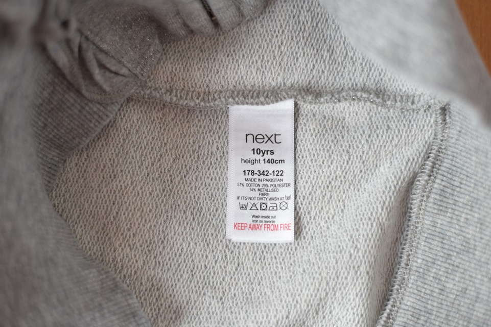 Šedá mikina, protkaná stříbrnou nití..
