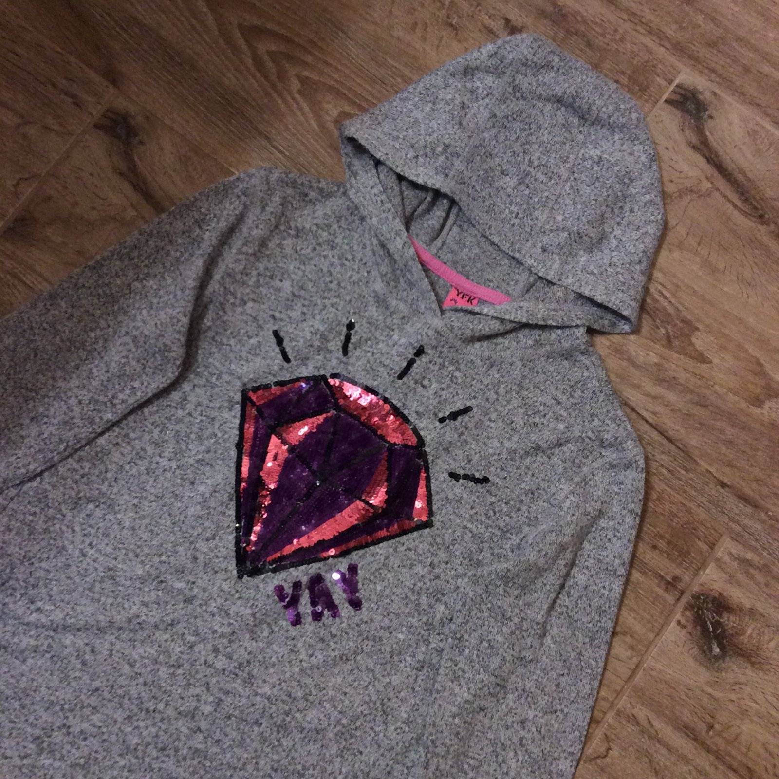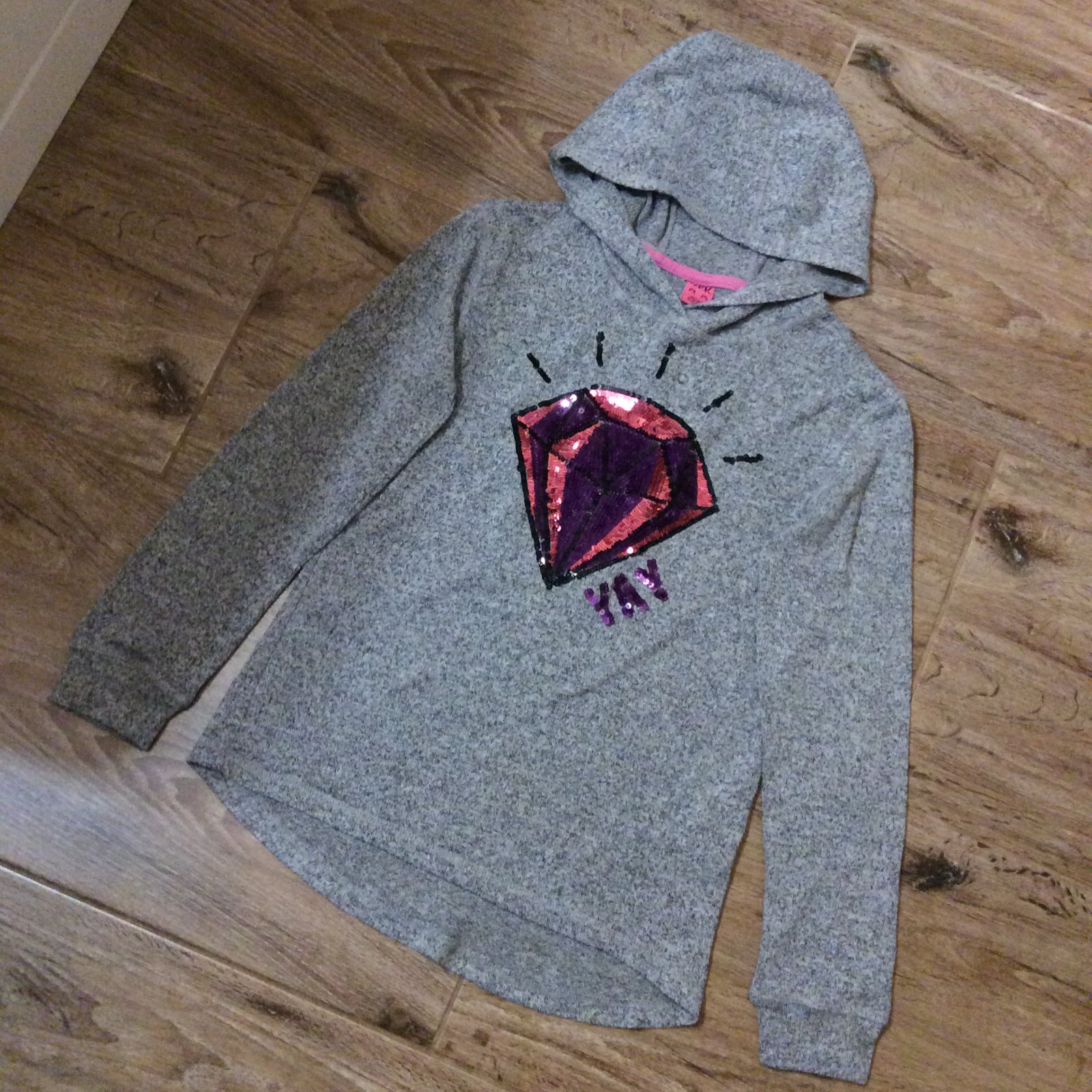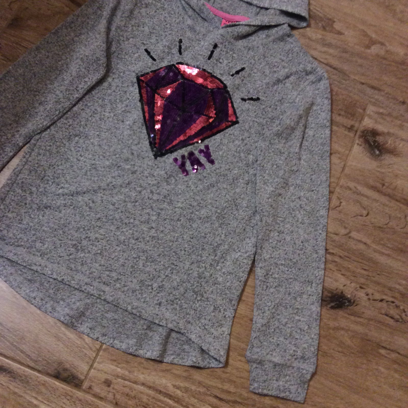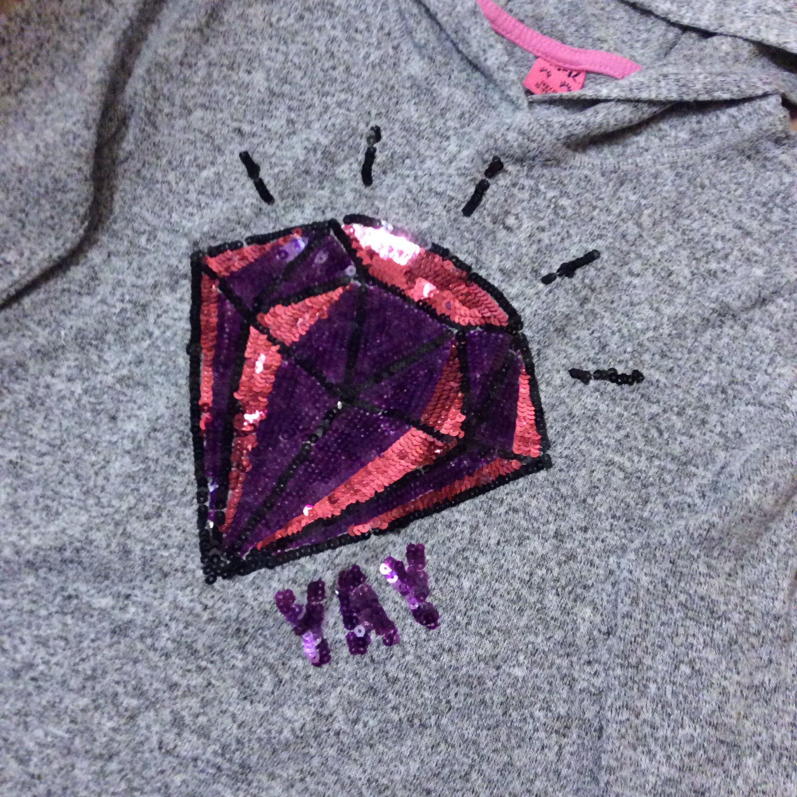 - tenká mikina/tričko s drahokamem zdobeným flitříky - příjemný materiál, nekrčí se-není třeba žehlit - zadní díl je delší