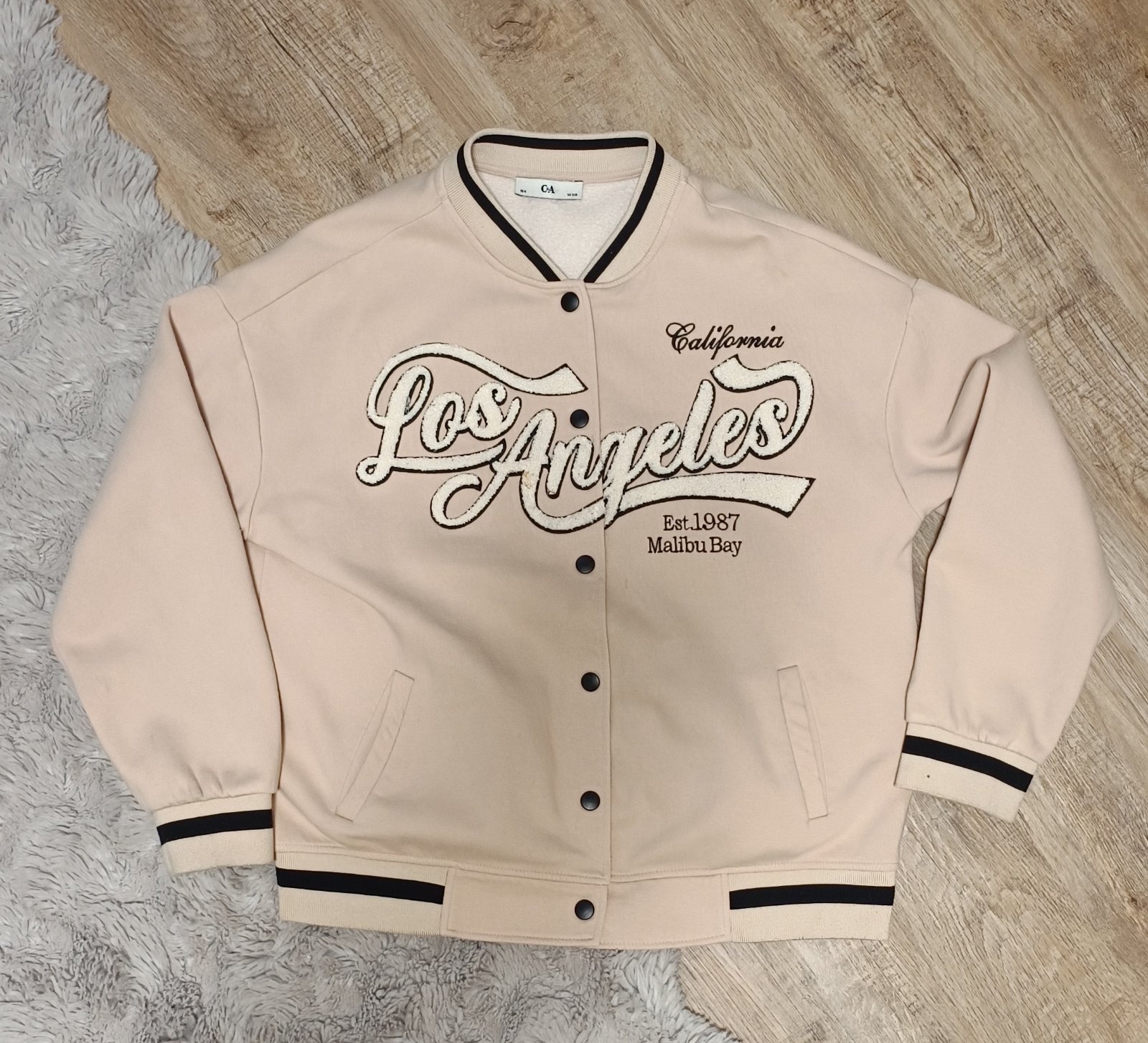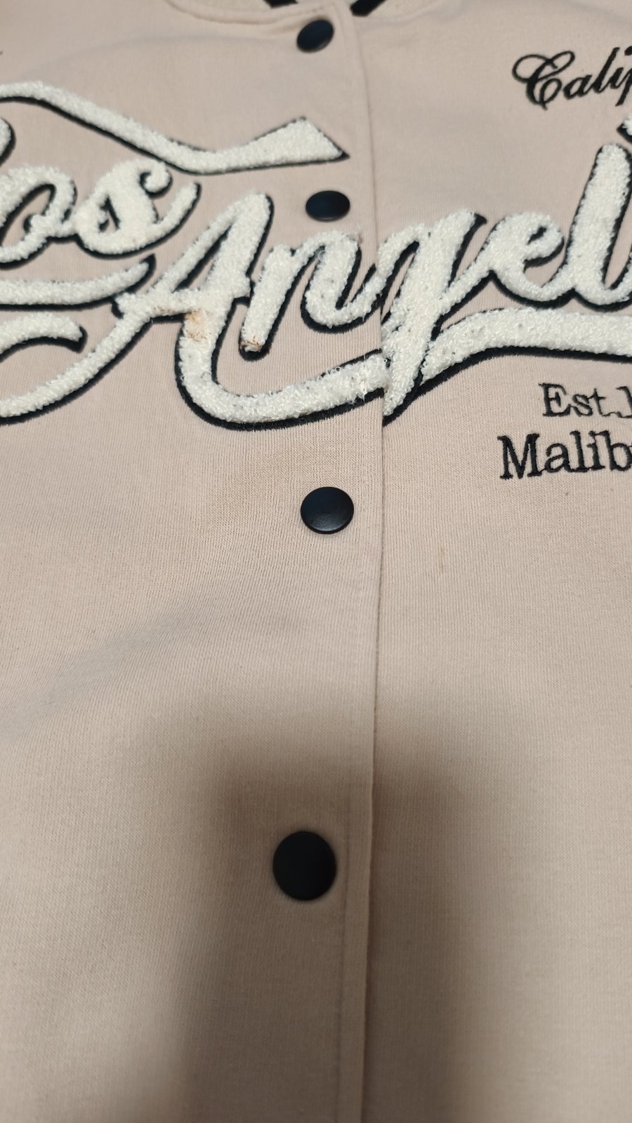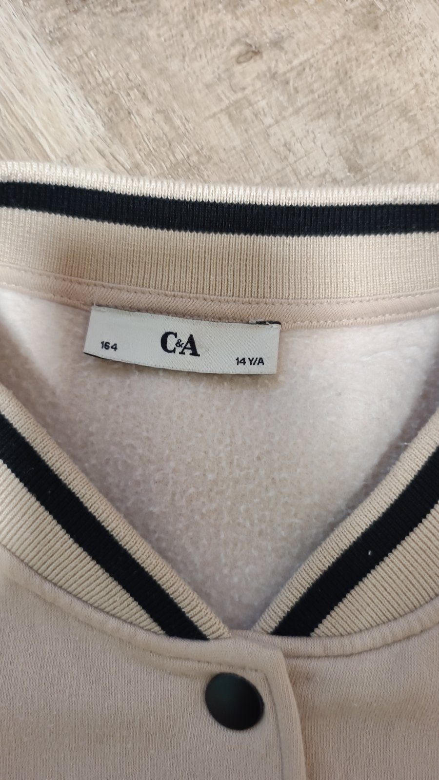 Mikina je málo nošená, ale dcera ji měla ve výtvarce, takže má fleky od barvy na dřevo, ale nic hrozného. Nemá ani práci žmolík. Celková délka 60 cm, rukáv od krku 68 cm, šíře přes prsa 55 cm.