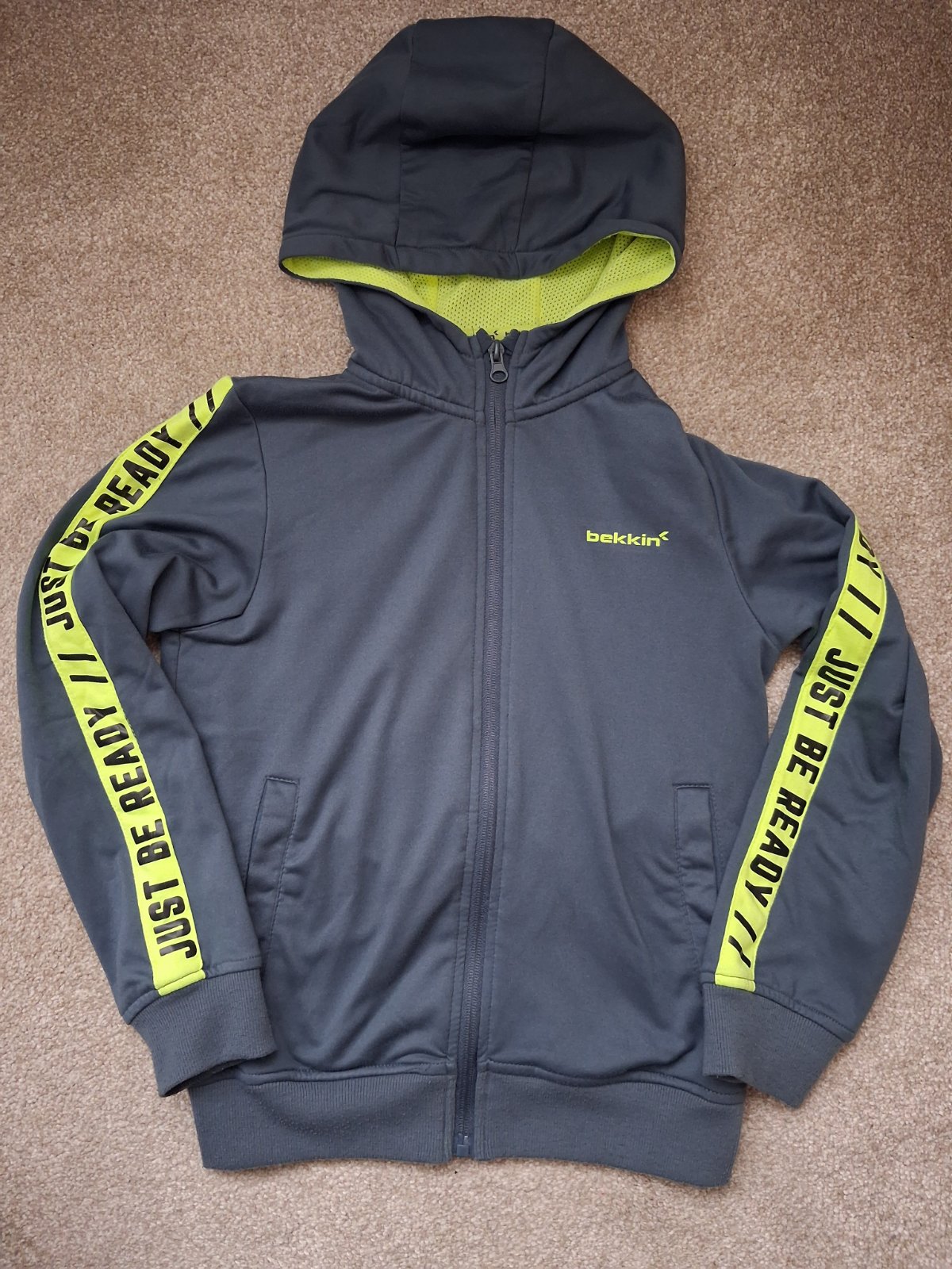 Prodám mikinu s kapucí se zapínáním na zip, velikost 134, značka Bekkini.