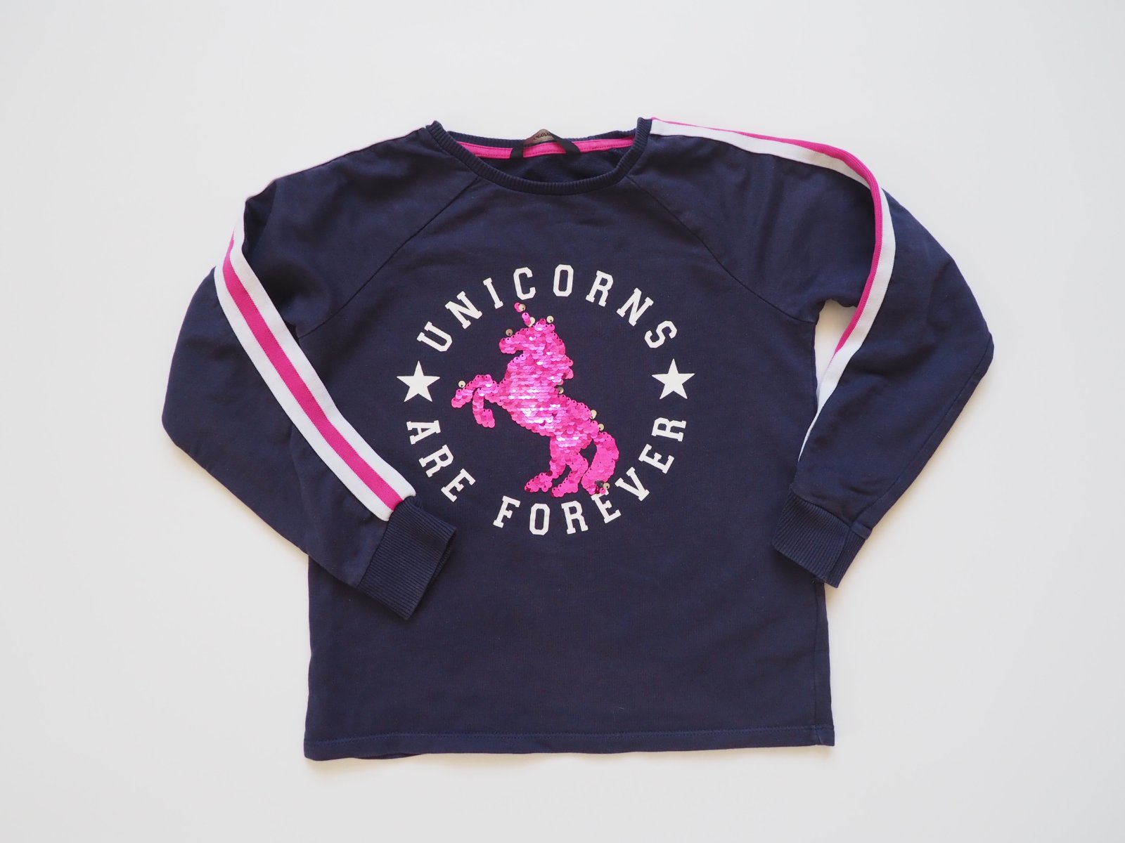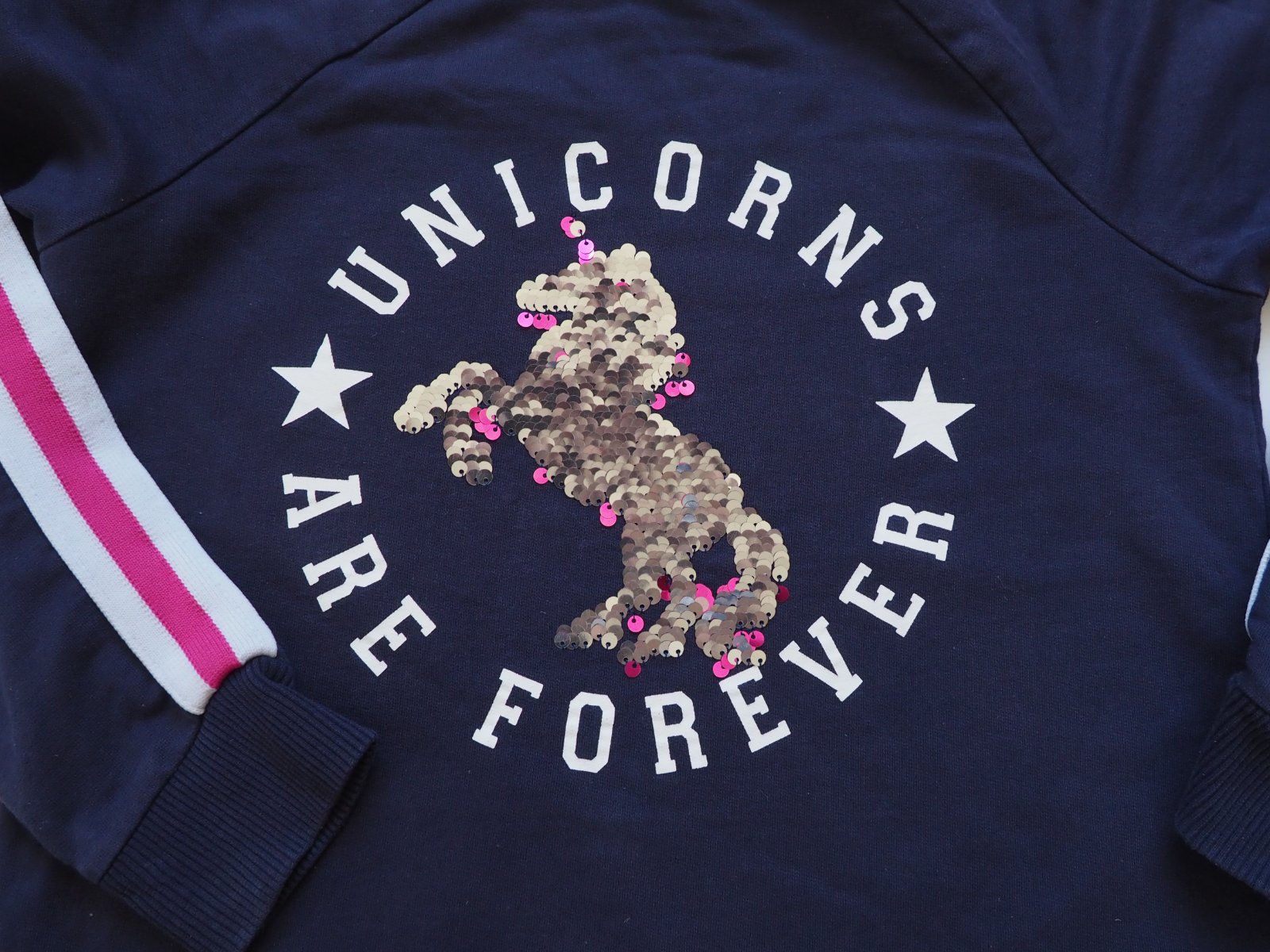Lehká tepláková mikina s jednorožcem z přehrnovacích flitrů.