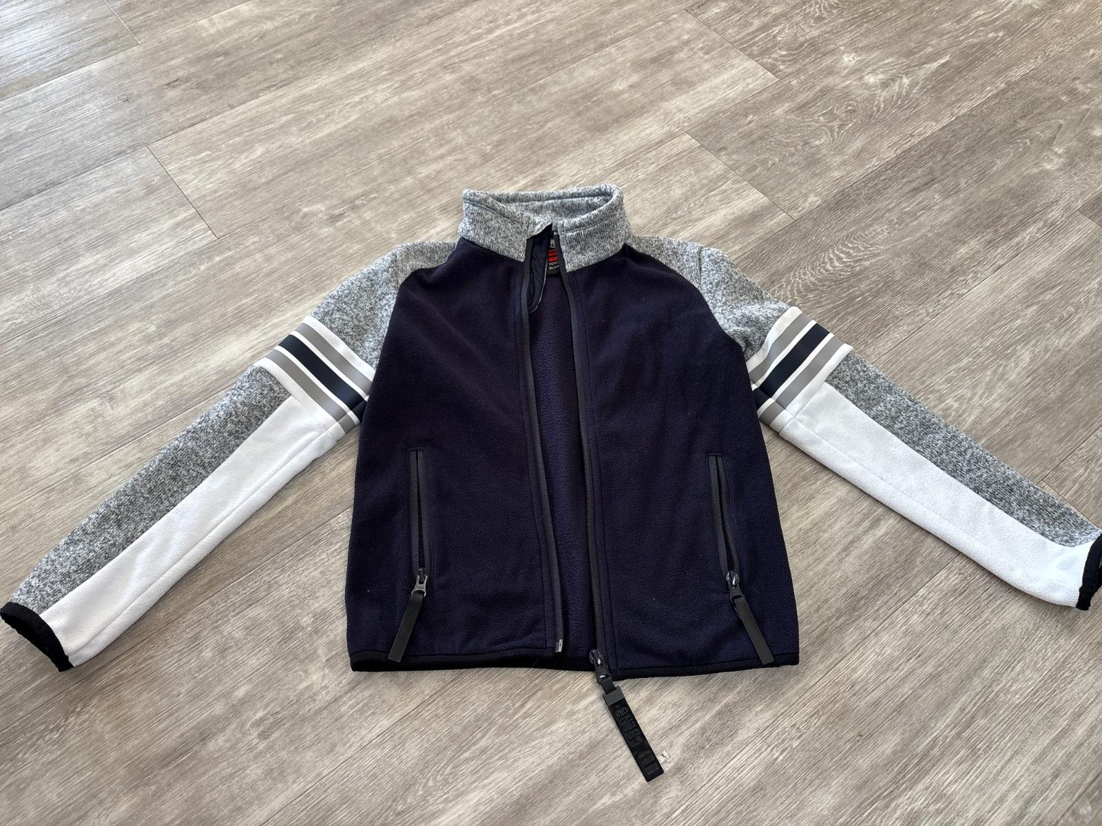 Nošená flísová mikina, uvnitř žmolíky. Seděla synovi při velikosti 128-134.