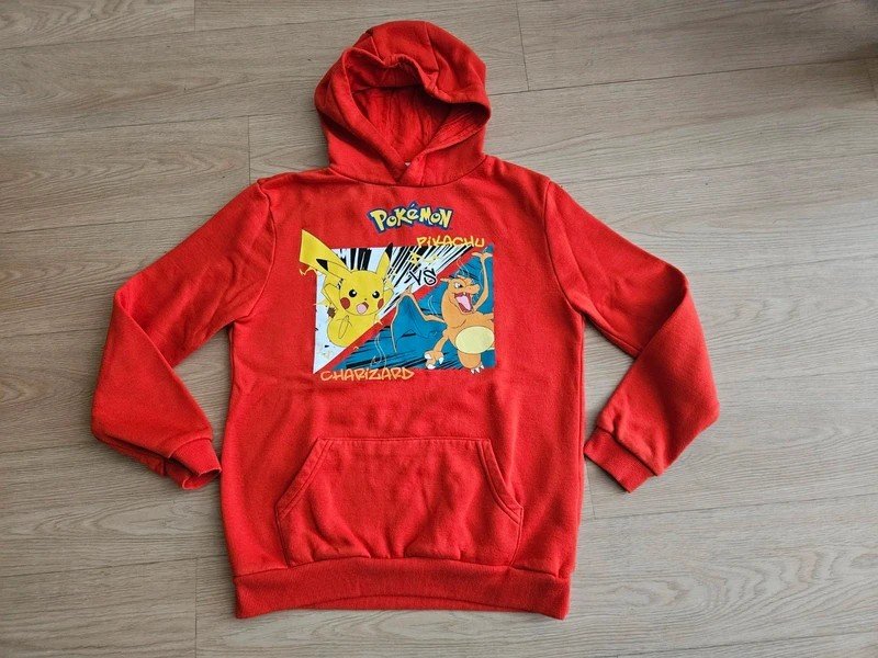 Mikina z Primarku, motiv Pokémon, kupovaná nová, velikost 152, uvnitř chloupek, nošená, má žmolek z běžného nošení a údržby, barva je taková cihlová