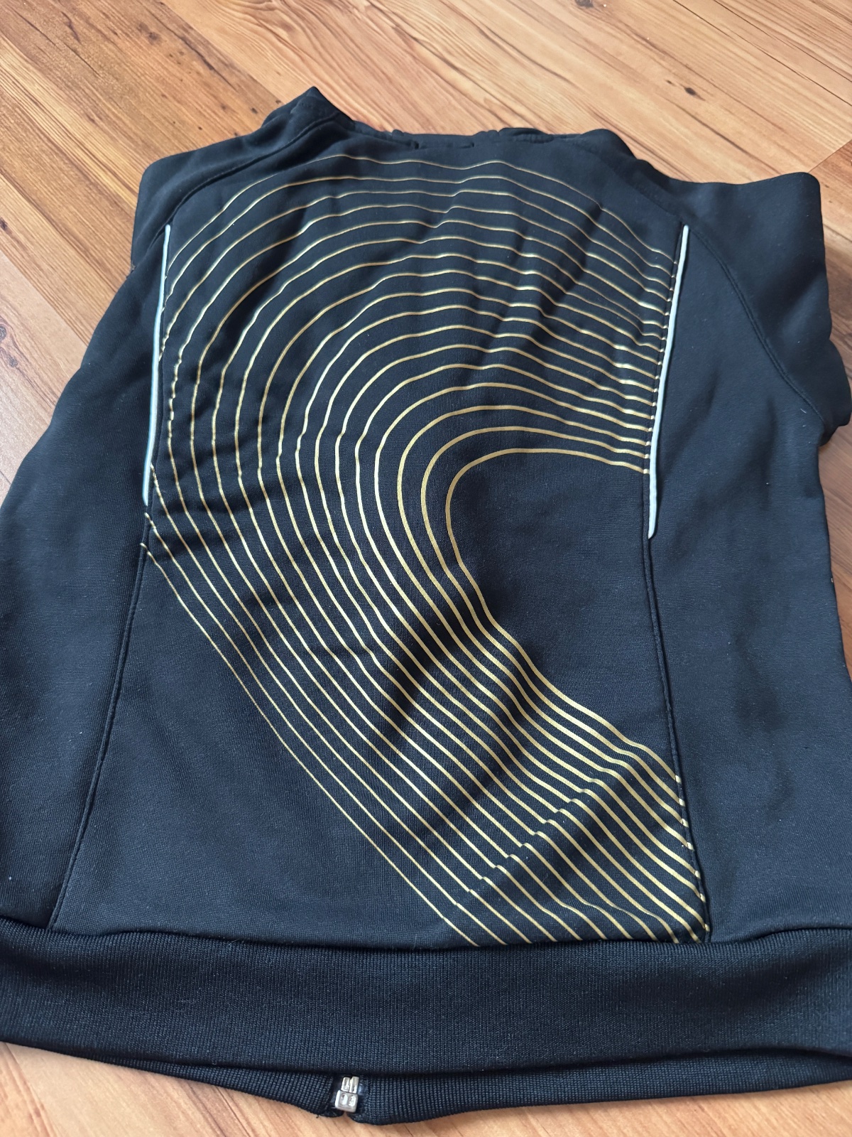 Mikinu jsem měla 1x na sobě, stále je v krásném stavu, bez vad, jako nová. Je černá s černými odlesky, znak ve přední části je z černých flitrů. Bohužel je mi větší :-(. Velikost je uvedena 42, mat...