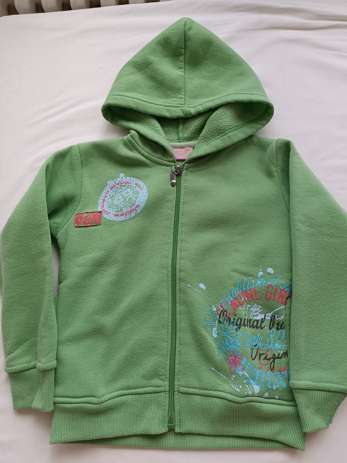 Prodám pěknou zelenou mikinu s kapucí a kapsami, jako nová, párkrát oblečená.