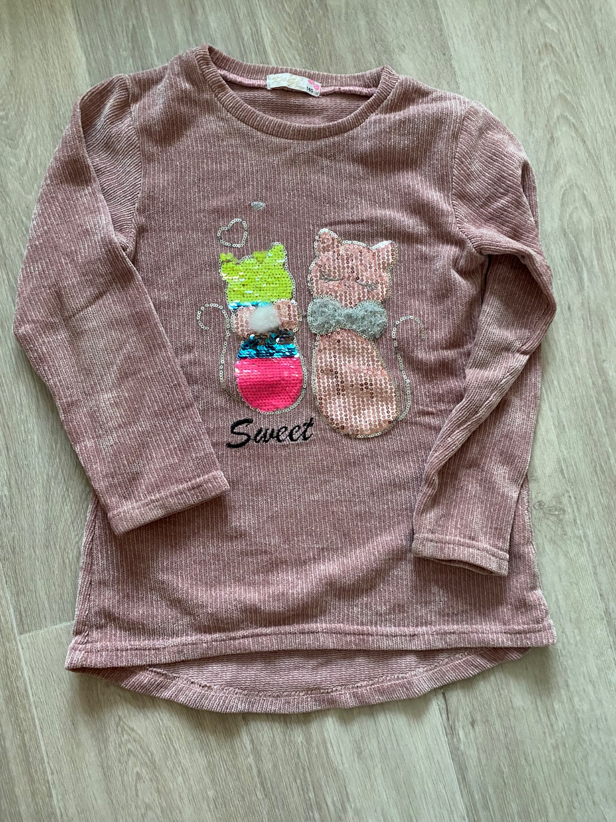 pěkný dívčí svetr v.128 s perličkami, barva jasnější pěknější,než na fotce,