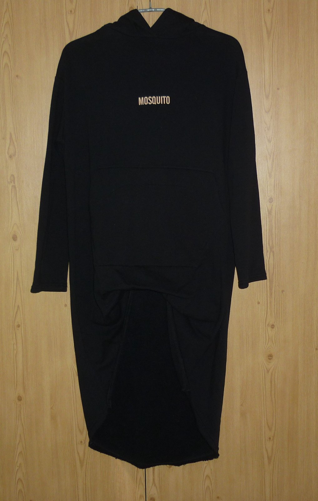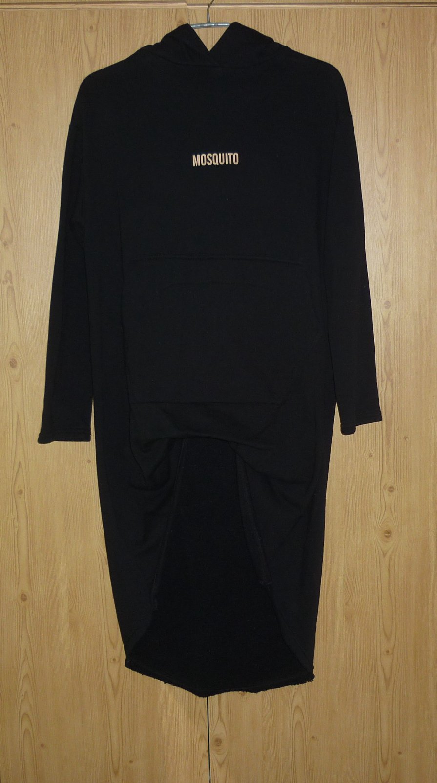 Prodám černou dámskou delší mikinu Mosquito, 1x na sobě, ve velmi dobrém stavu. Kapuce, uvnitř zateplená, vpředu nahoře tištěné logo, klokaní kapsa na předním díle. Spodek předního dílu je zajímavě podebraný a je kratší než zadní díl. Super k legínám! Materiál: 90% bavlna a 10% polyester. Velikost: 4 - odpovídá S/M. Rozměry: šířka v místě podpaží 54cm x 2, pas 53cm x 2, boky 57cm x 2, délka rukávu od ramene 53cm, celková délka předního dílu 73cm, celková délka zadního dílu 113cm. Cena: 350,-Kč + poštovné. Koukněte na moje další inzeráty, třeba si něco vyberete a ušetříte na poštovném. Tel.: 728 455 567