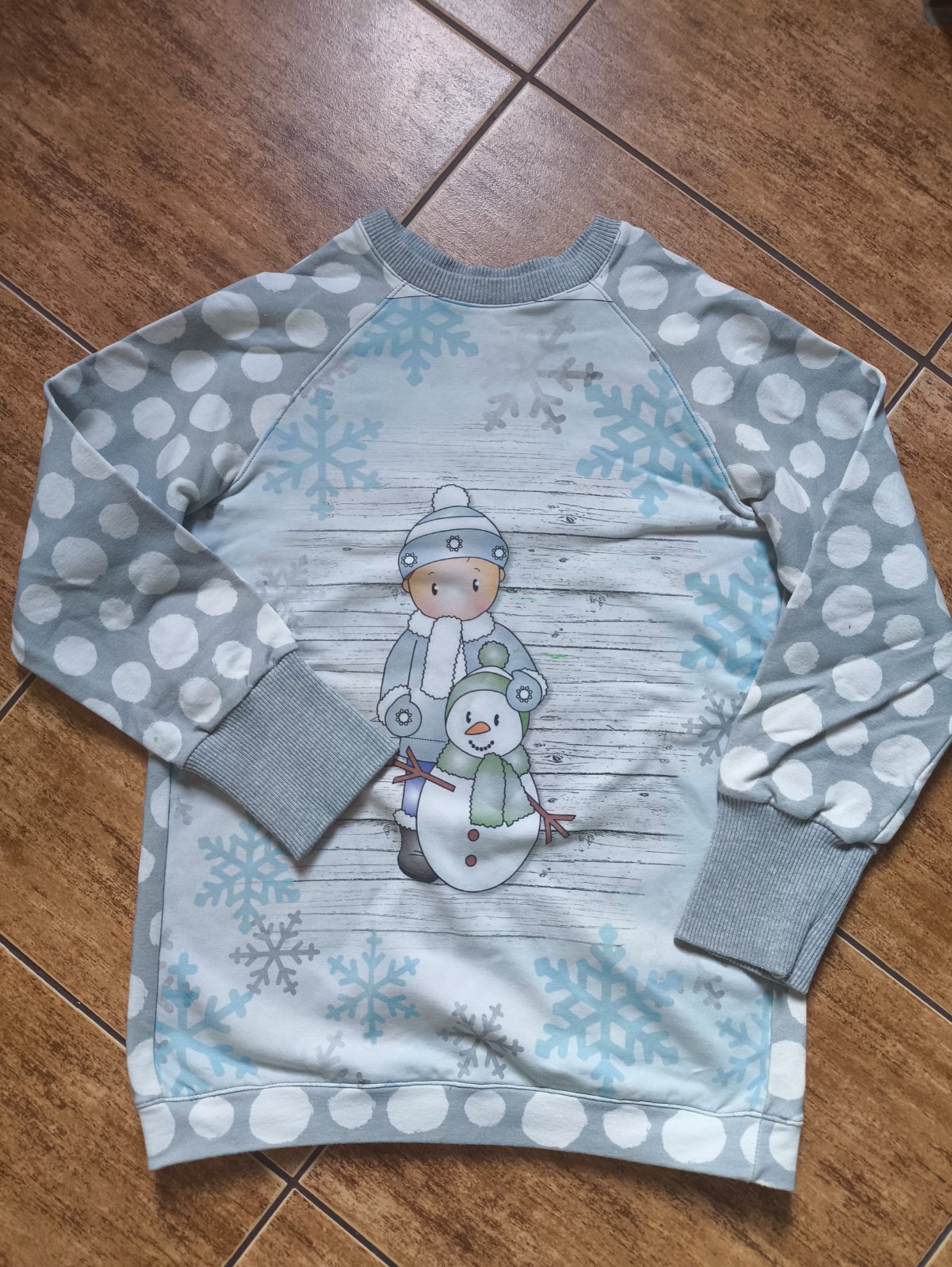 Nošená, trochu znát praní, ale zachovalá na volný čas, vel. 6-7 let, délka 45cm, a rukáv celý 50cm