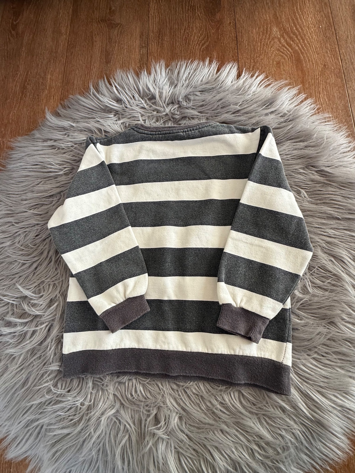 Šedá mikina s kapucí, syn měl asi jednou na sobě. Velikost 5-6 let. Délka 46 cm, šířka 39 cm, délka rukávu od krku 51 cm.