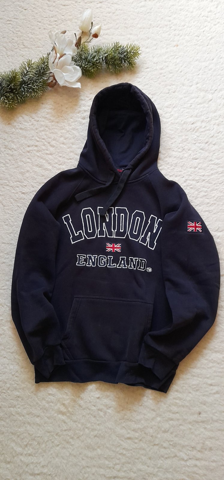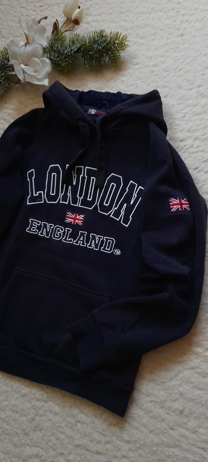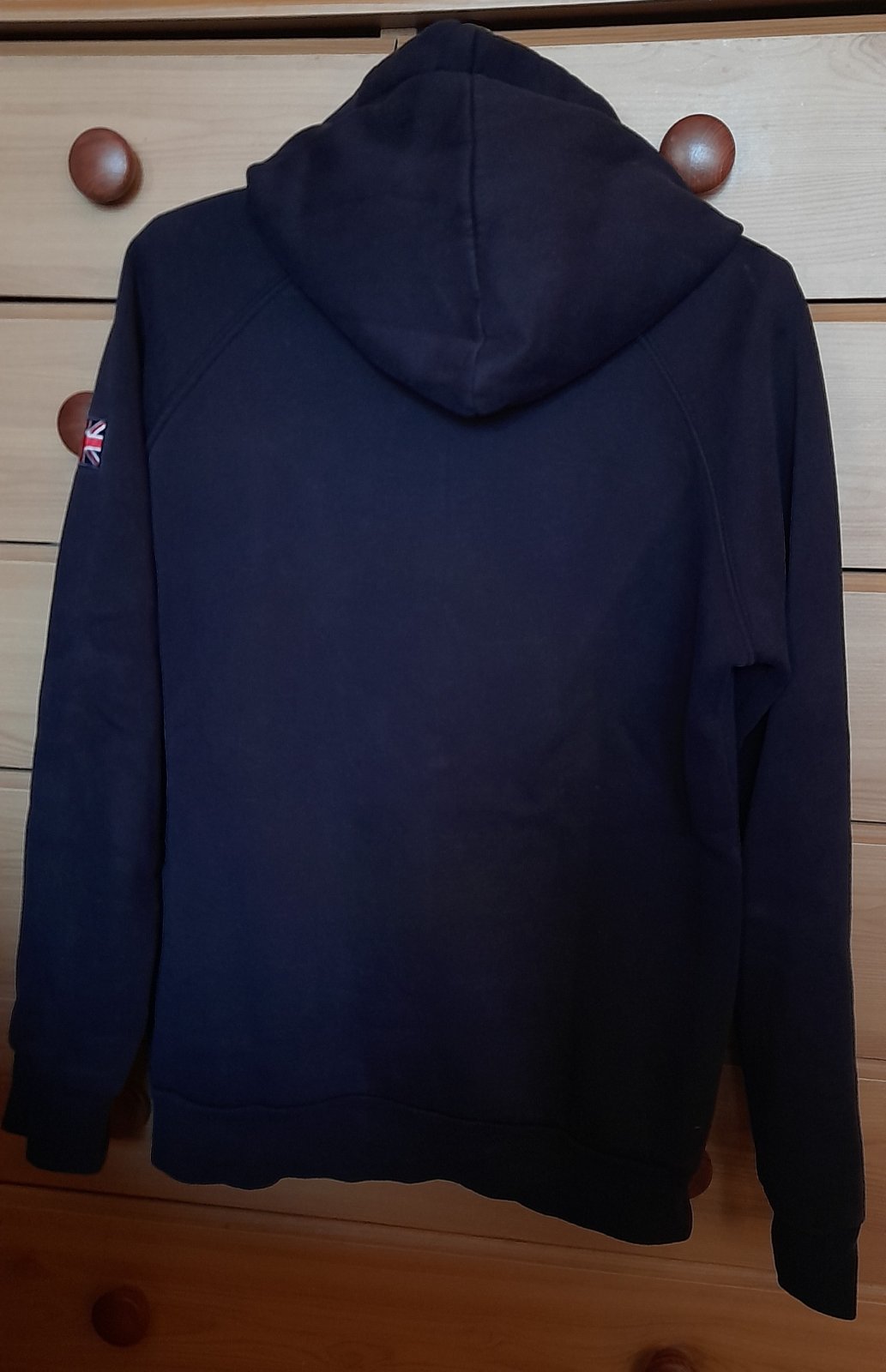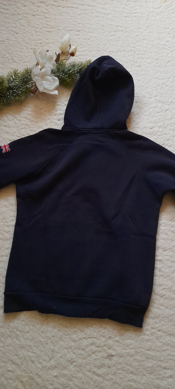 ✒ popis: vyšívané logo s vlajkou, přední kapsa klokanka, kupovaná v Anglii
