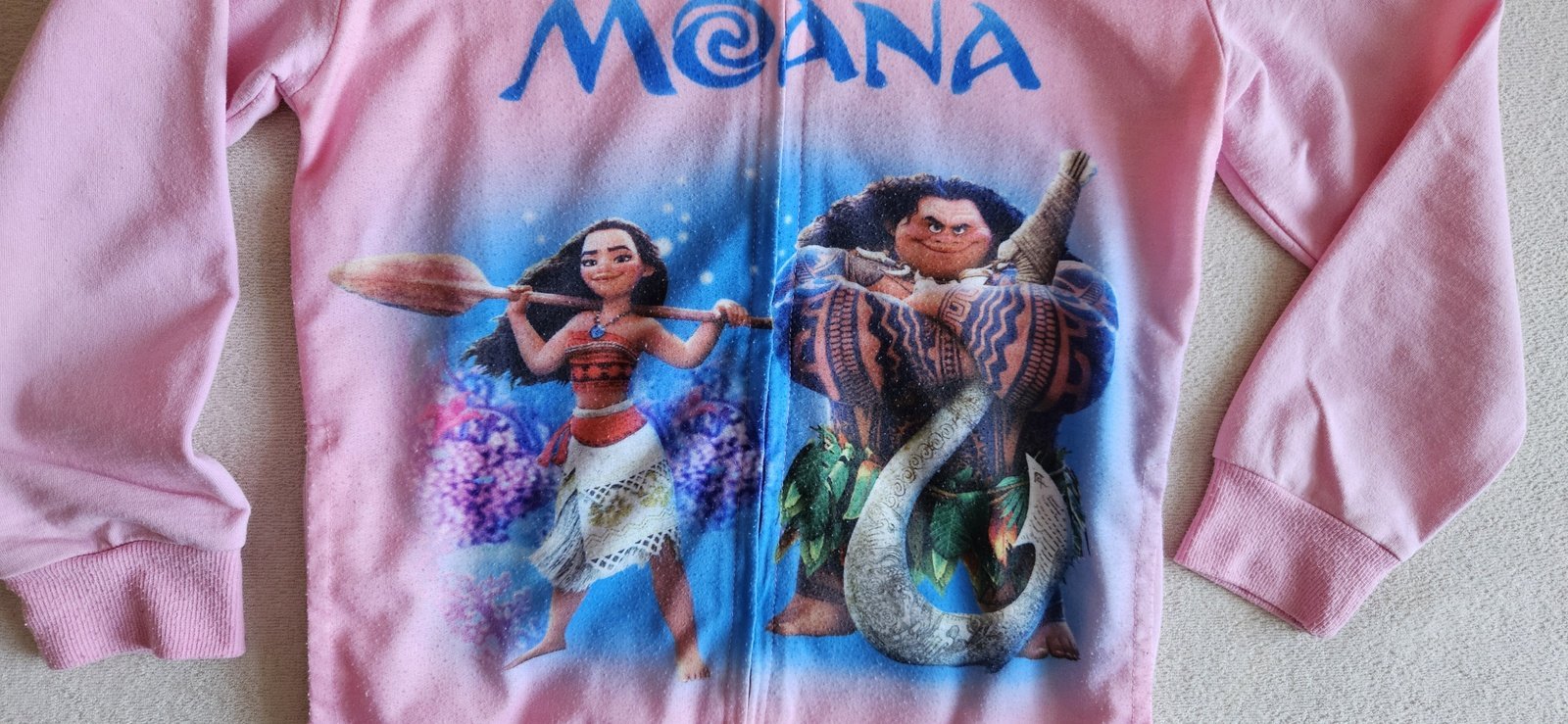 Prodám v pěkném stavu lehčí dívčí mikinu s obrázkem Odvážné Vaiany a Mauího.