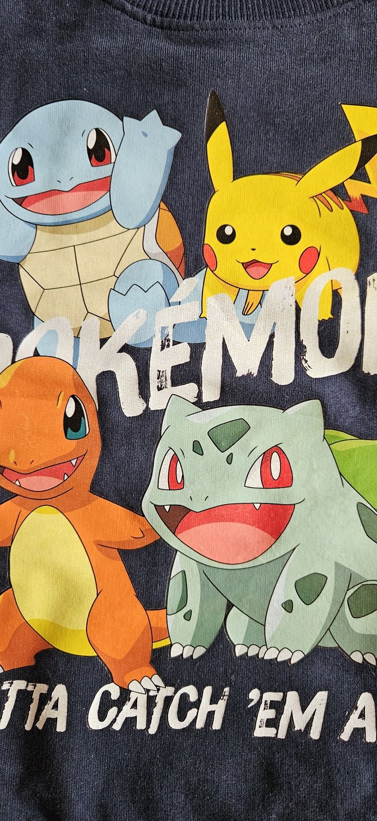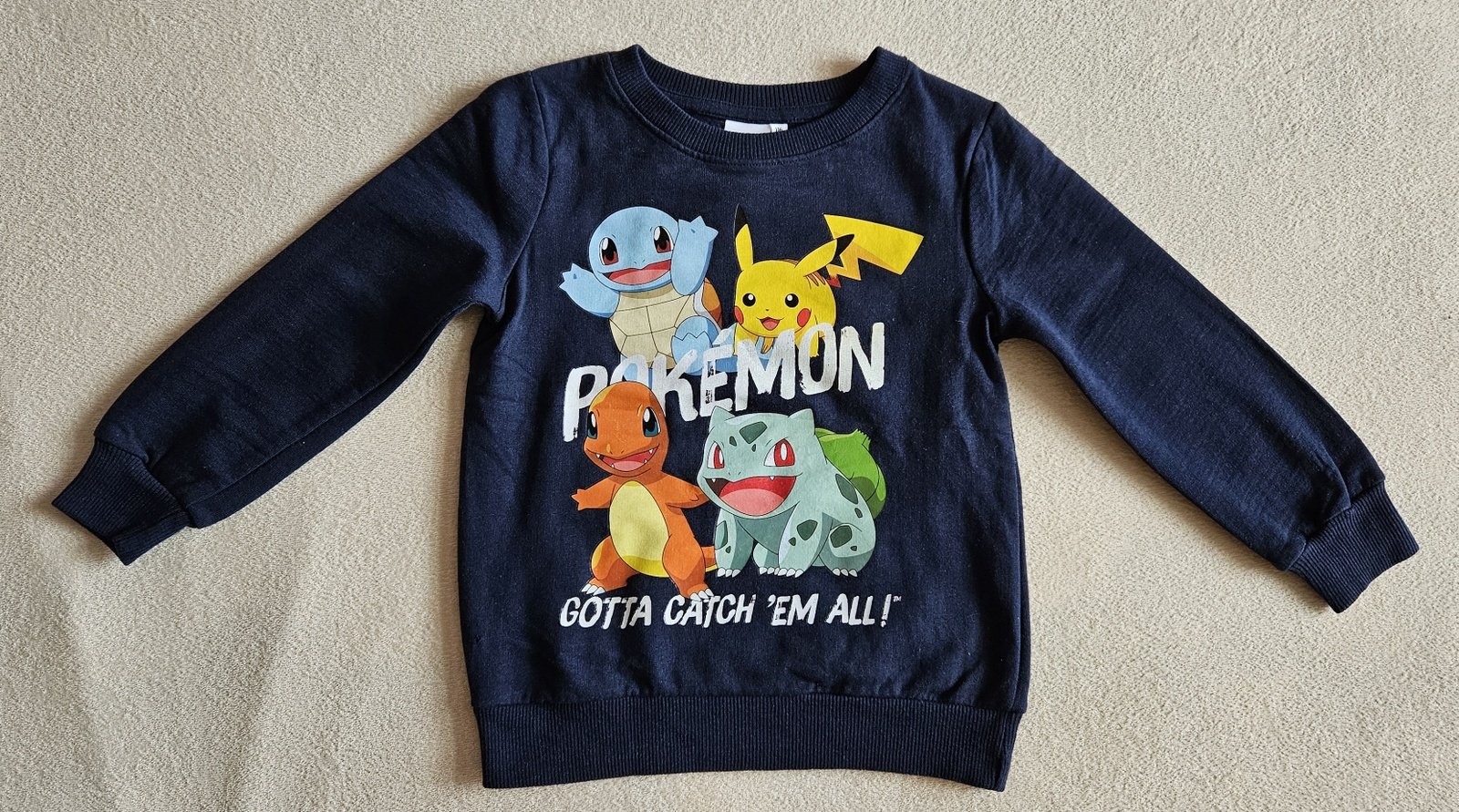 Ve výborném stavu prodám tmavě modrou chlapeckou mikinku s obrázkem Pokemonů - Pikachu, Charmander, Bulbasaur, Squirtle.