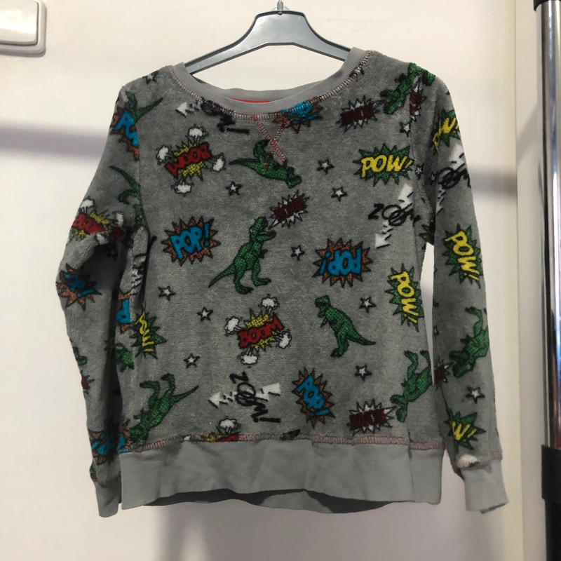 100% polyester, nošená málo, velikost asi 122, rukáv od krku 51 cm.