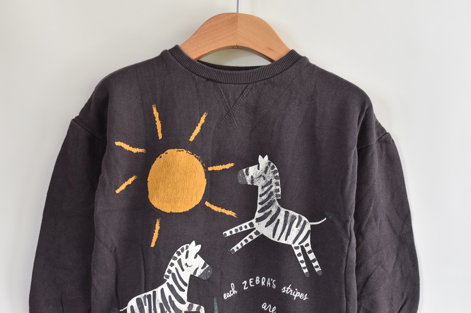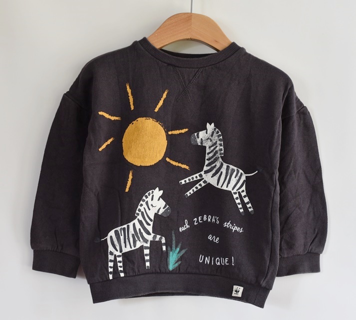 VELMI DOBRÝ STAV – oblečení nese známky nošení a praní, jako patrnější chloupek, mírně opraná barva, žmolík jen na lemech,