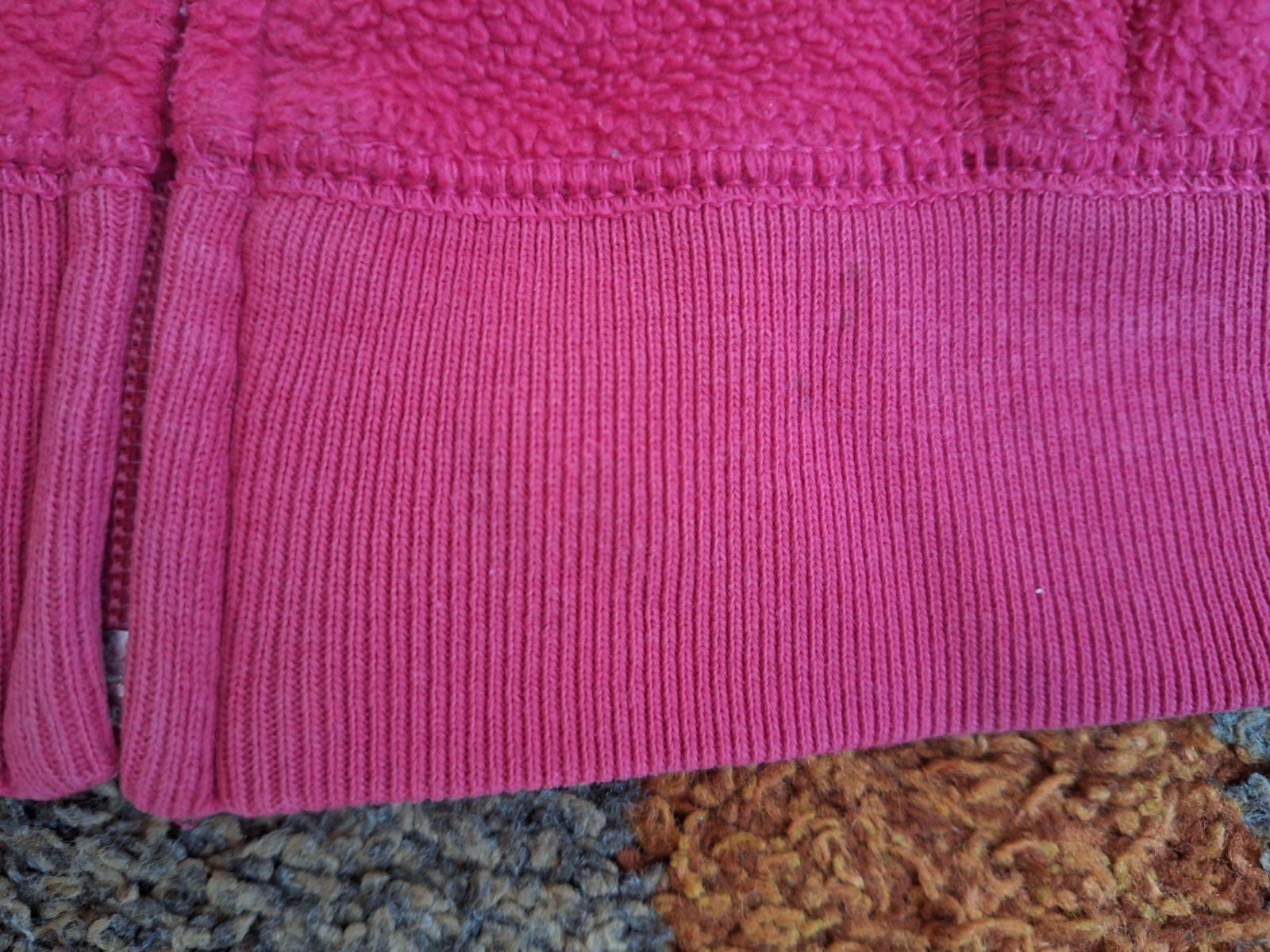 Flísová mikina, už spíše na lítačku. Barva je sytě růžová.